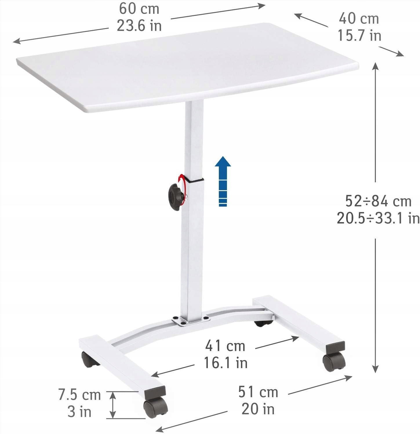 - Regulowana wysokość : Możesz ustawić wysokość stolika w zakresie od 52 do 84 cm wg. twoich potrzeb, aby dopasować go do fotela, sofy, fotela gamingowego itp. i w zależności od wzrostu.