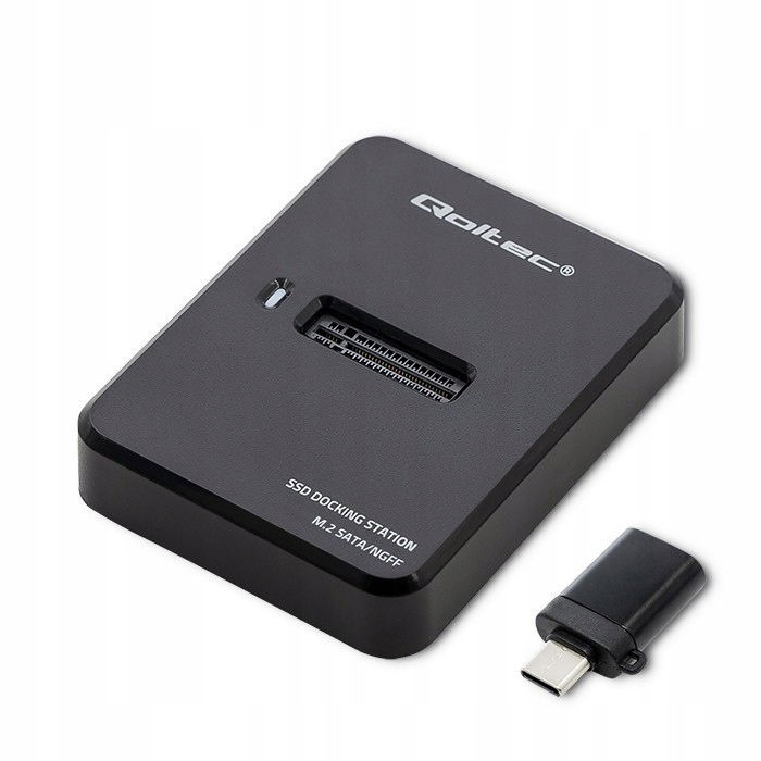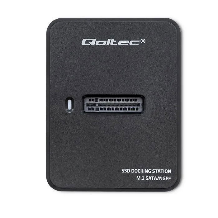 Innowacja w Twoim zasięguStacja dokująca marki Qoltec jest ciekawą alternatywą, nie tylko dla osób przechowujących dokumenty lub prywatne pliki na dyskach, ale również dla małych firm chcących archiwizować swoje dane komputerowe nie inwestując w kosztowne rozwiązania.Stację dokującą można podłączyć także do telewizora lub monitora wyposażonego w port USB - wówczas pełnić będzie funkcję odtwarzacza video z ogromnym zapleczem pamięci, jeżeli gromadzisz zdjęcia i filmy na twardych dyskach to ten produkt dedykowany jest właśnie Tobie.Prędkość transmisji 5 Gb/sPrzenośna Stacja dokująca marki Qoltec pozwala na podłączenie dysku SSD do gniazda M.2 SATA a następnie za pomocą złącza USB C 3.1 do wybranego urządzenia elektronicznego. Stacja współpracuje z takimi urządzeniami jak TV, komputer, laptop, konsola do gier, router.Stacja dysków marki Qoltec to urządzenie:- użyteczne gdy nie ma innej możliwości podłączenia dysku SSD,- odpowiednia dla dysków o rozmiarach : 2230, 2242, 2260, 2280,- obsługa standardu UASP, pozwala na wykonywanie w tym samym czasie kilku poleceń,- interfejs USB 3.1 Gen 1 umożliwia transmisję danych z szybkością 5 Gb/s,- urządzenie jest kompatybilne z USB 3.1 Gen 1 oraz wsteczniejszymi USB 3.0 i USB 2.0,- dobra stabilność urządzenia dzięki podkładkom antypoślizgowym,- Dioda LED informuję o pracy urządzenia,- pojedynczy dysk M.2 obsługuje maks. 2TB.Komfort użytkowaniaNie musisz instalować sterowników, wystarczy podłączyć do portu USB i używać dzięki prostocie funkcji Plug&Play. Produkt cechuje ergonomiczny kształt zapewniając komfort użytkowania, a minimalistyczny i elegancki design, który nadaje cienka i lekka obudowa tworzą doskonałą estetykę urządzenia dzięki czemu dopasuje się do każdego typu pomieszczenia. Amortyzację gwarantują dodatkowe gumowe nóżki stabilizujące obudowę przed przemieszczaniem się w trakcie pracy. Solidna i lekka konstrukcjaProdukt cechuje ergonomiczny kształt zapewniając komfort użytkowania, a minimalistyczny i elegancki design, który nadaje cienka i lekka obudowa tworzą doskonałą estetykę urządzenia dzięki czemu dopasuje się do każdego typu pomieszczenia. Amortyzację gwarantują dodatkowe gumowe nóżki stabilizujące obudowę przed przemieszczaniem się w trakcie pracy.
