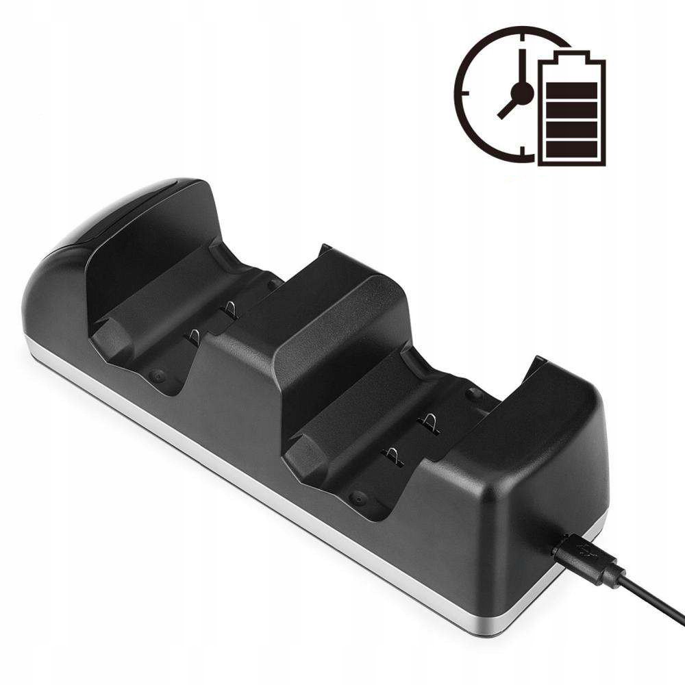 Czas ładowania jednego kontrolera to około 1-2 h. Wskaźnik na panelu stacji dokującej poinformuje Cię o ukończeniu ładowania pada. Ponieważ stacja jest zasilana przewodem USB możesz ją podłączyć w dowolnym miejscu: do konsoli, powerbanka, komputera lub adaptera sieciowego.