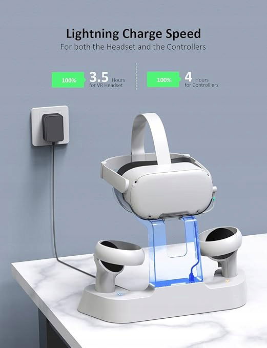 - Idealne rozwiązanie: Jeśli Twój Quest 2 jest połączony z paskiem Elite z baterią, ta stacja dokująca jest idealnym rozwiązaniem.