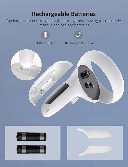 - Dodatkowe wyjście USB-A: Ładowarka obsługuje jednoczesne ładowanie Oculus Quest 2 Elite Strap z baterią i samego Quest 2.