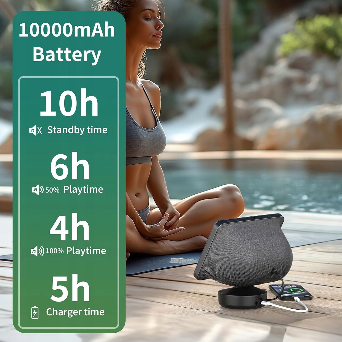 ✅ Wydajna bateria: 10 000 mAh – zapewnia ok. 4–5 godzin pracy bez kabla.