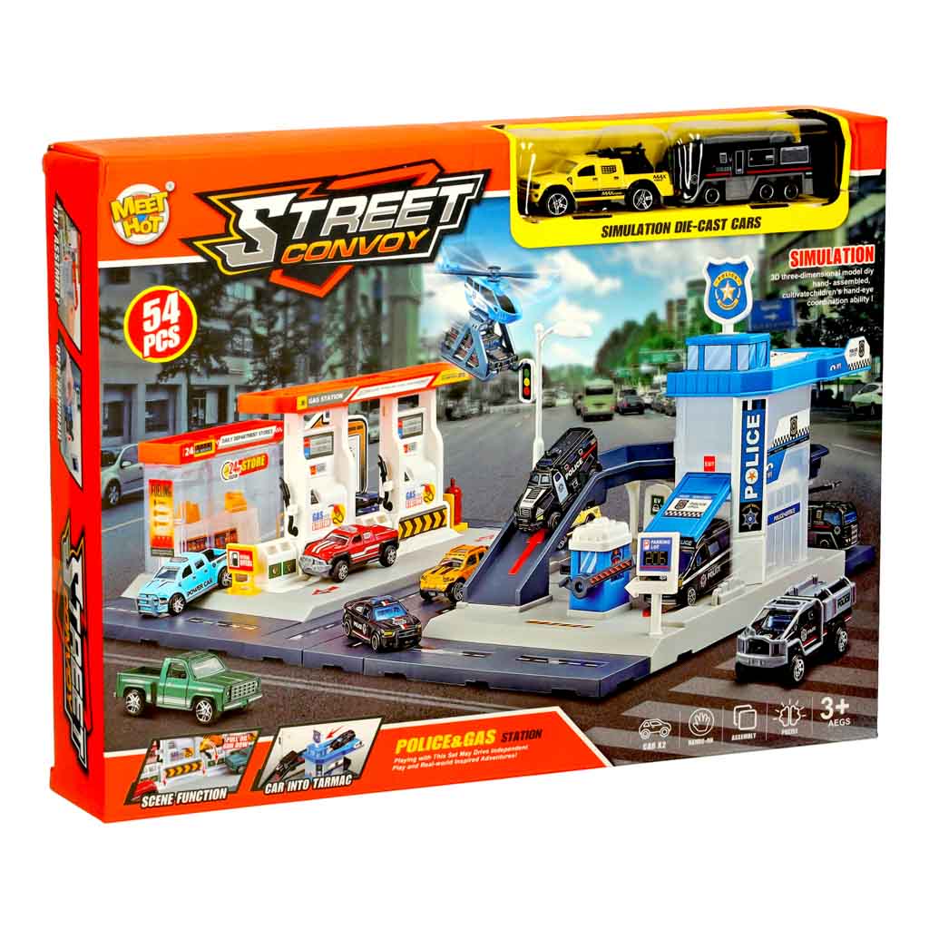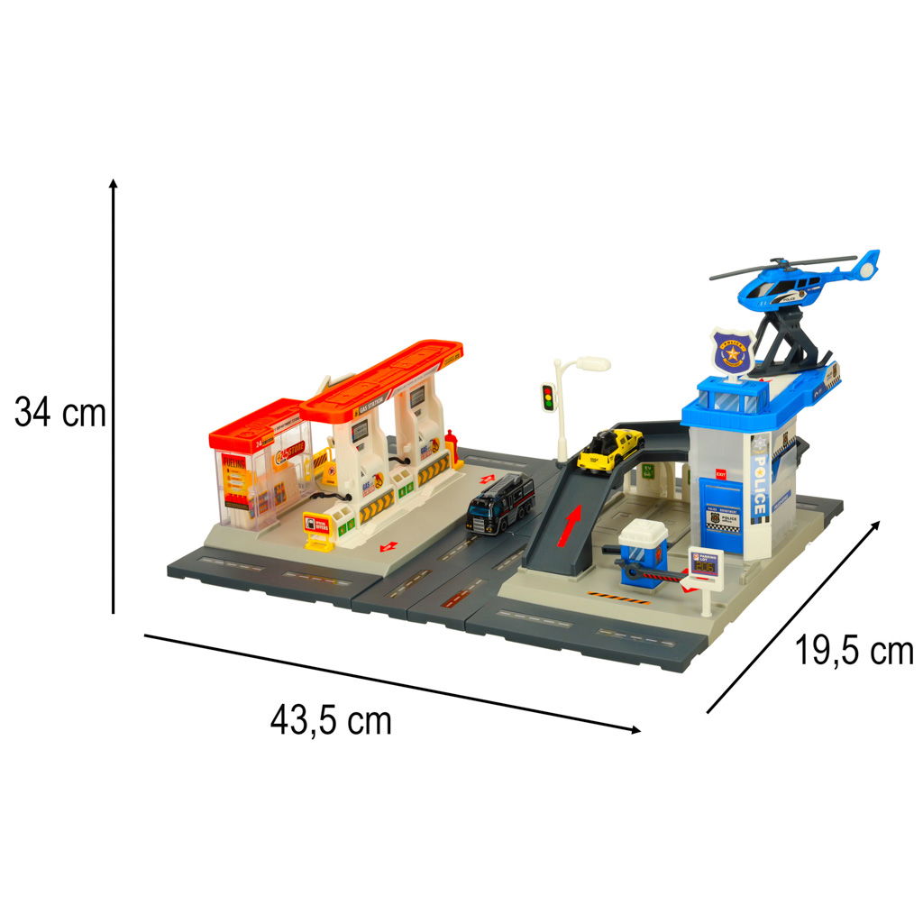 Stacja Paliw Parking Policyjny Zabawka dla Dzieci Auta Duży Zestaw 54 el.