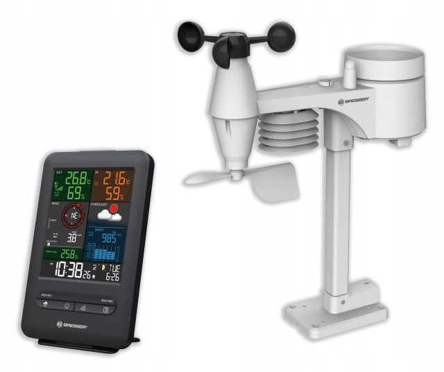 Stacja pogody Bresser 5w1 kolorowa anemometr, deszczomierz
