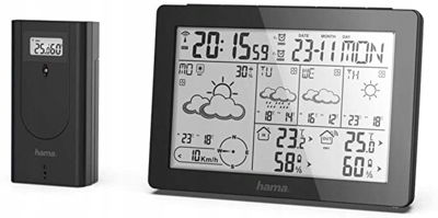 - Dwuczęściowy zestaw składający się z radiowego odbiornika danych pogodowych do prognozowania pogody (na podstawie profesjonalnych danych) oraz radiowego czujnika zewnętrznego