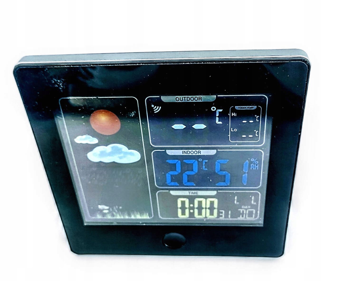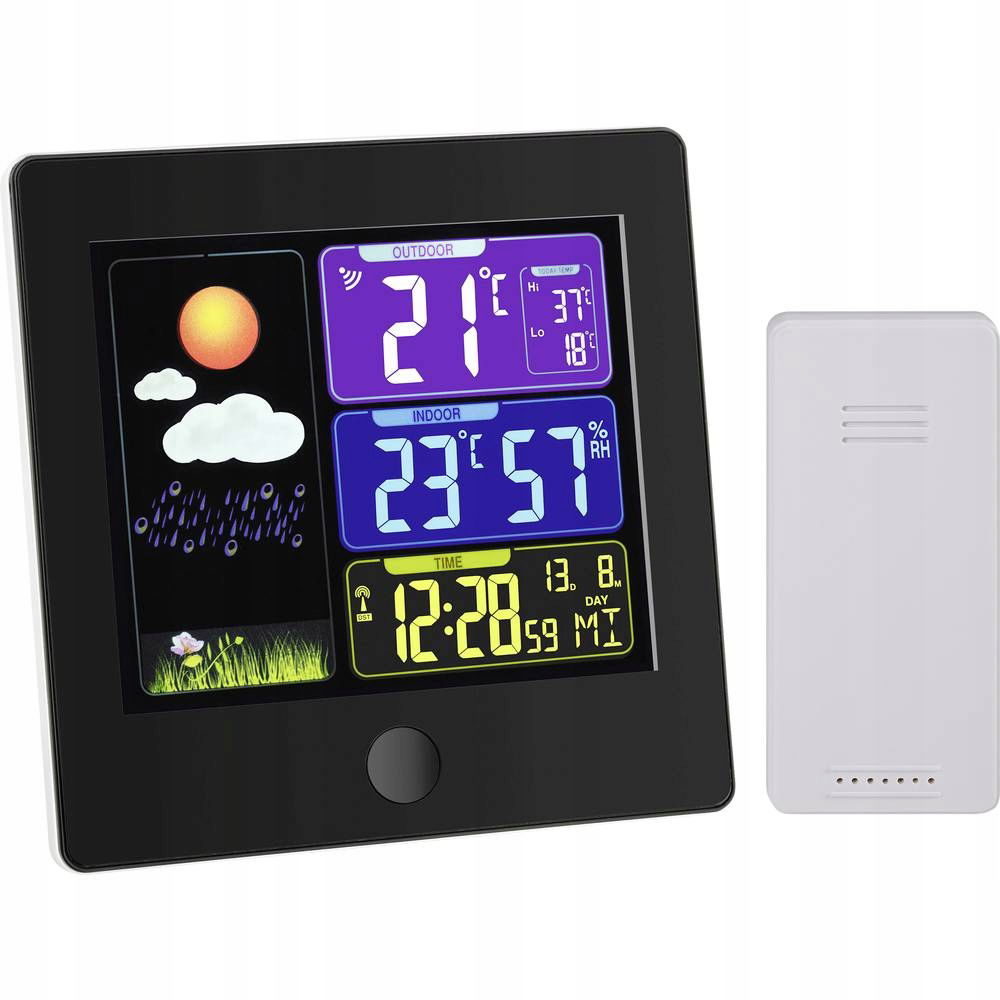 Sun radiowa stacja pogodowa z kolorowym wyświetlaczem.