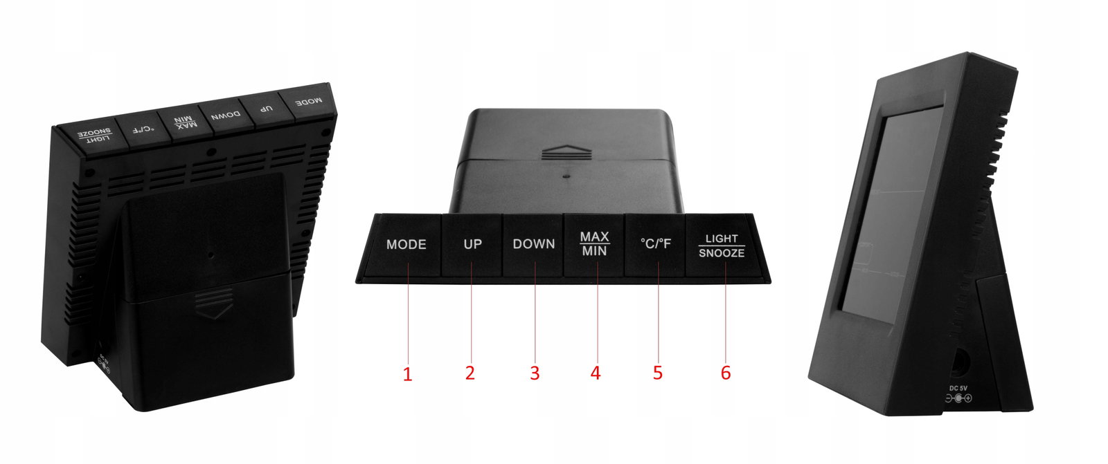 - Zasilanie stacji: DC 5V USB lub 3x baterie 1,5V AAA (brak baterii w zestawie)