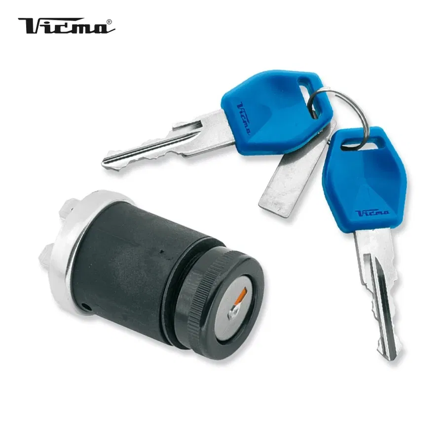 Uniwersalna stacyjka zapłonowa marki VICMA, zaprojektowana jako zamiennik dla szerokiej gamy motocykli. Posiada 3 pozycje pracy (np. wyłączona, zapłon, postój) oraz 4 przewody do podłączenia, co zapewnia elastyczność montażu. Jest to element kluczowy dla bezpieczeństwa i prawidłowego funkcjonowania układu elektrycznego pojazdu.