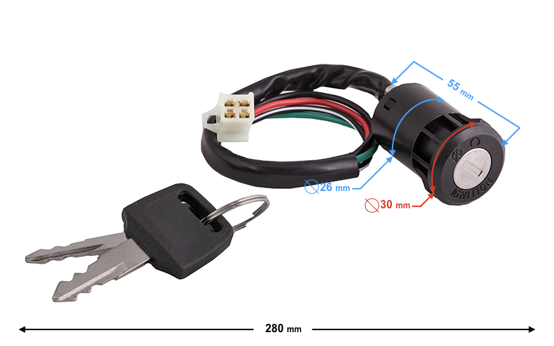 Zasady bezpieczeńśtwa i użytkowania:Stacyjkaz końcówką żeńską do ATV (4 przewody 300mm) kod ean 590522083501