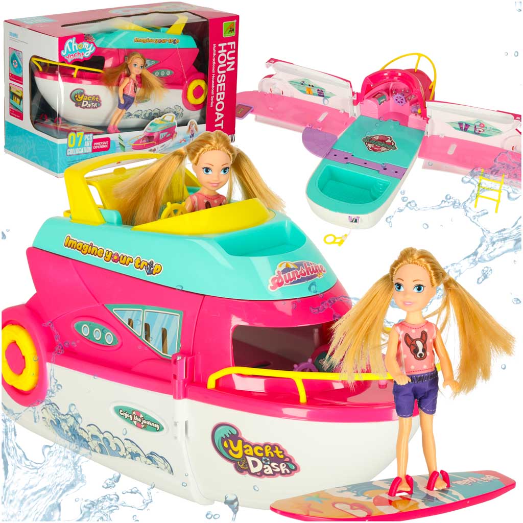 STATEK ŁÓDŹ JACHT DLA LALEK AKCESORIA LALKA ŁÓDKA ROZKŁADANA Z BASENEM