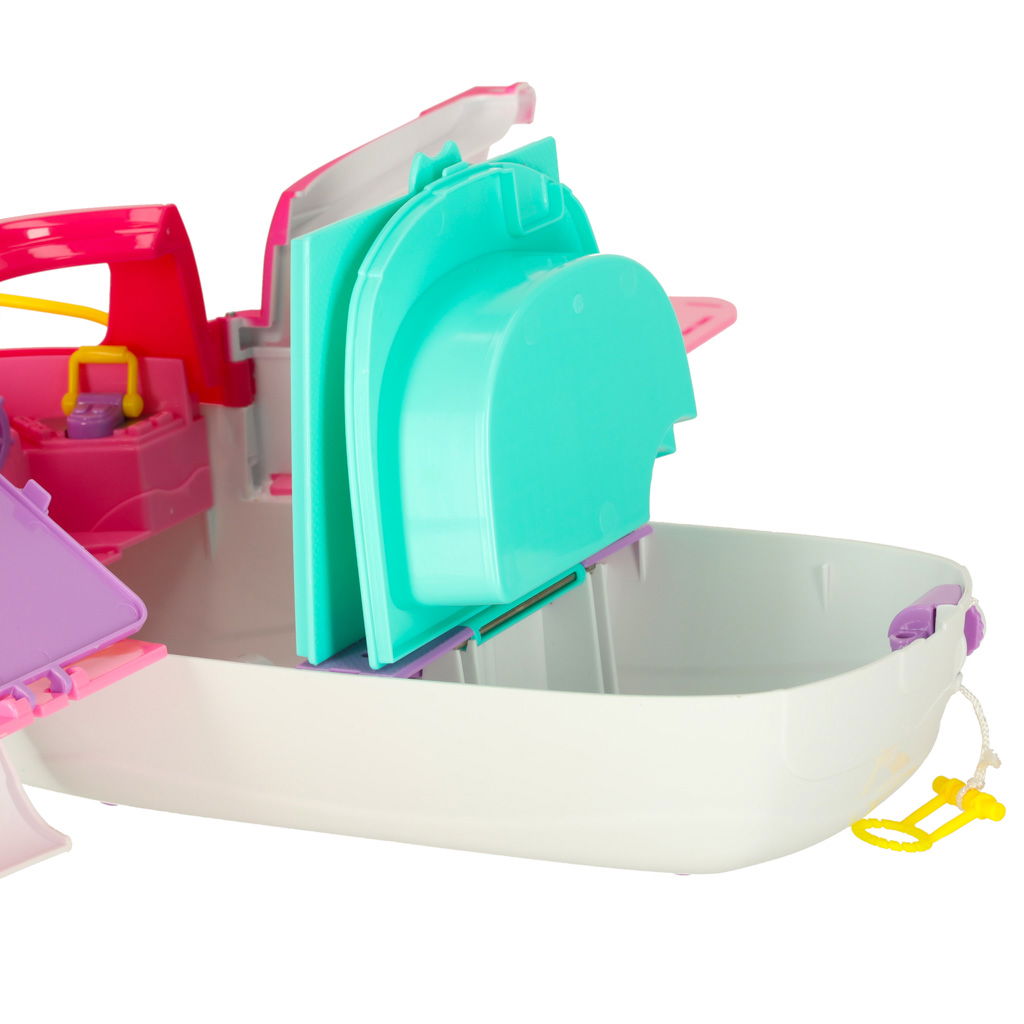 ROZKŁADANA ŁÓDŹ DLA LALEK – MAŁY ŚWIAT WIELKIEJ PRZYGODY - Ten kolorowy jacht rozkładany z basenem i zjeżdżalnią to zaproszenie do świata kreatywnej zabawy. Otwierany kadłub odkrywa przestronne wnętrze, gdzie laleczka może odpoczywać, a odłączana motorówka pozwala na dodatkową zabawę w podróże i morskie rejsy.