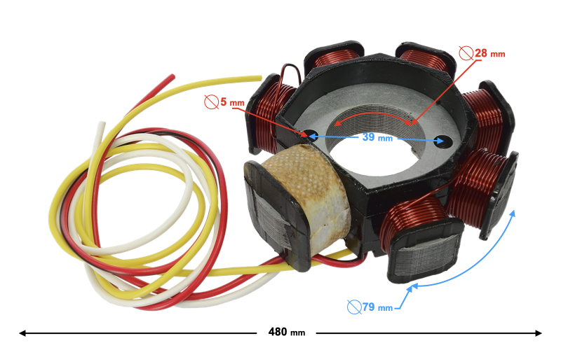 - średnica zewnętrzna statora: 79 mm