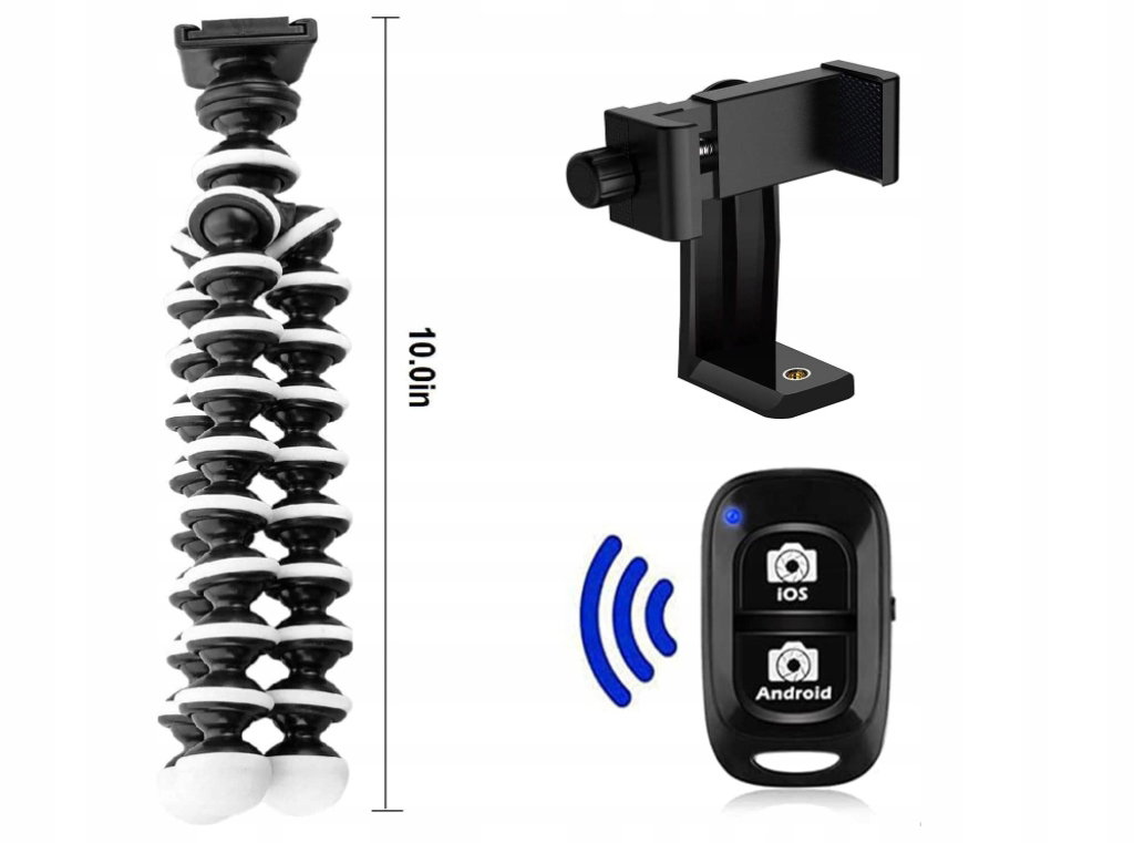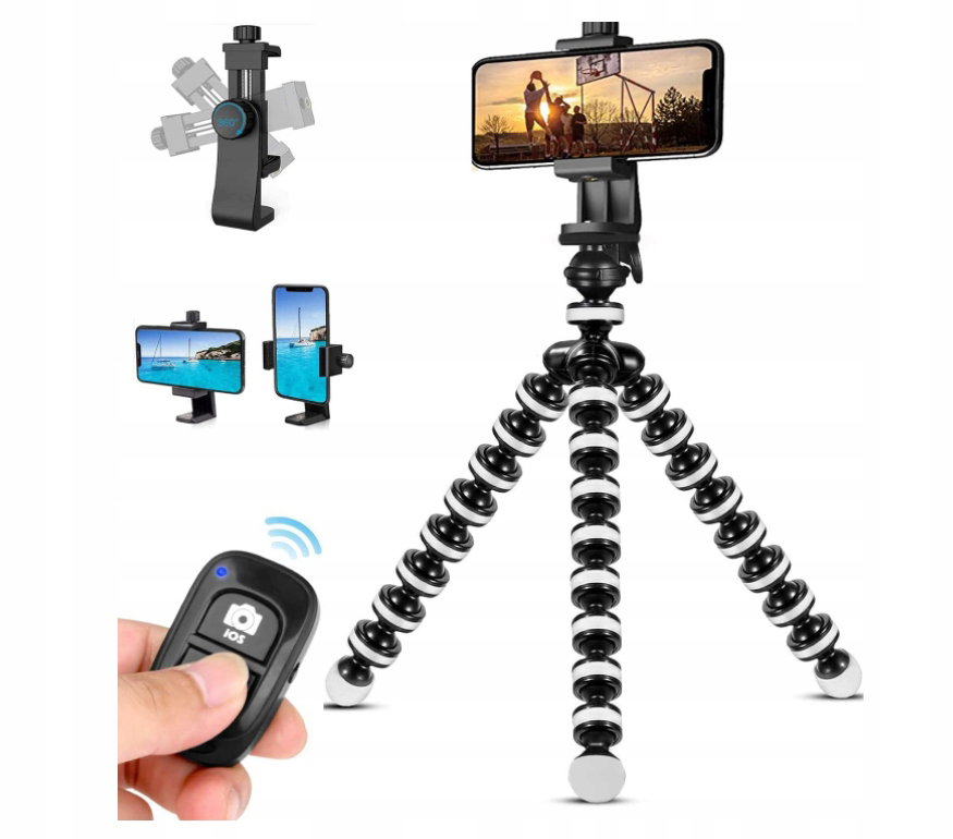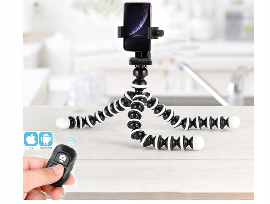 Elastyczny statyw jest wyposażony w wysokiej jakości nogi pokryte gumą, dzięki czemu jest wodoodporny, wytrzymały, trwały i antypoślizgowy.