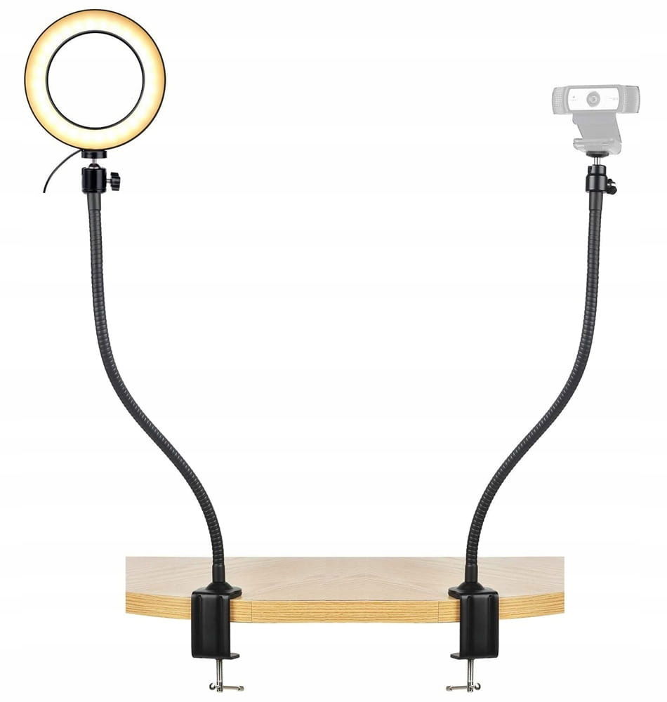 Profesjonalny zestaw akcesoriów do kamer internetowych ? z lampą pierścieniową LED 20 cm, regulowanym statywem i uchwytem biurkowym. Idealne rozwiązanie do transmisji na żywo, nagrywania wideo, wideokonferencji, vlogowania czy wykonywania selfie.