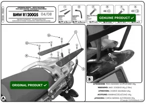 Zasady bezpieczeńśtwa i użytkowania: Stelaż kufra centralnego BMW R 1200GS (04-12) ( Z PŁYTĄ MONOKEY ) ( DO ZAMOCOWANIA NA ORYGINALNYM STELAŻU ) KAPPA kod ean 8029871065194