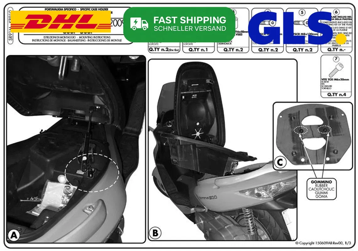- stelaż nie zawiera płyty - można ją dokupić osobno pod kodem Kod producenta (Givi), K628 (Kappa)