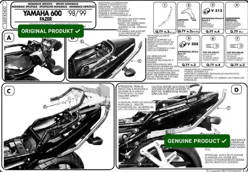 Zasady bezpieczeńśtwa i użytkowania: STELAŻ KUFRA CENTRALNEGO YAMAHA FZS 600 FAZER (98-03) ( BEZ PŁYTY ) KAPPA kod ean 8029871028243