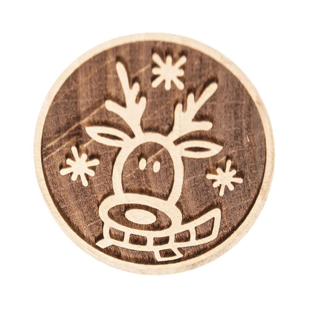 PRAKTYCZNA - Pieczątka do dekorowania ciastek ze wzorem renifera. Wysokość stempelka wynosi 3 cm a średnica 5,5 cm.