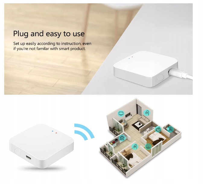 Pilot aplikacji Smart Life/Tuya. Dzięki temu inteligentnemu koncentratorowi automatyki domowej, który jest kompatybilny z aplikacją Smart Life/Tuya, możesz łatwo sterować systemem automatyki domowej w dowolnym miejscu i czasie za pomocą smartfona/tabletu.