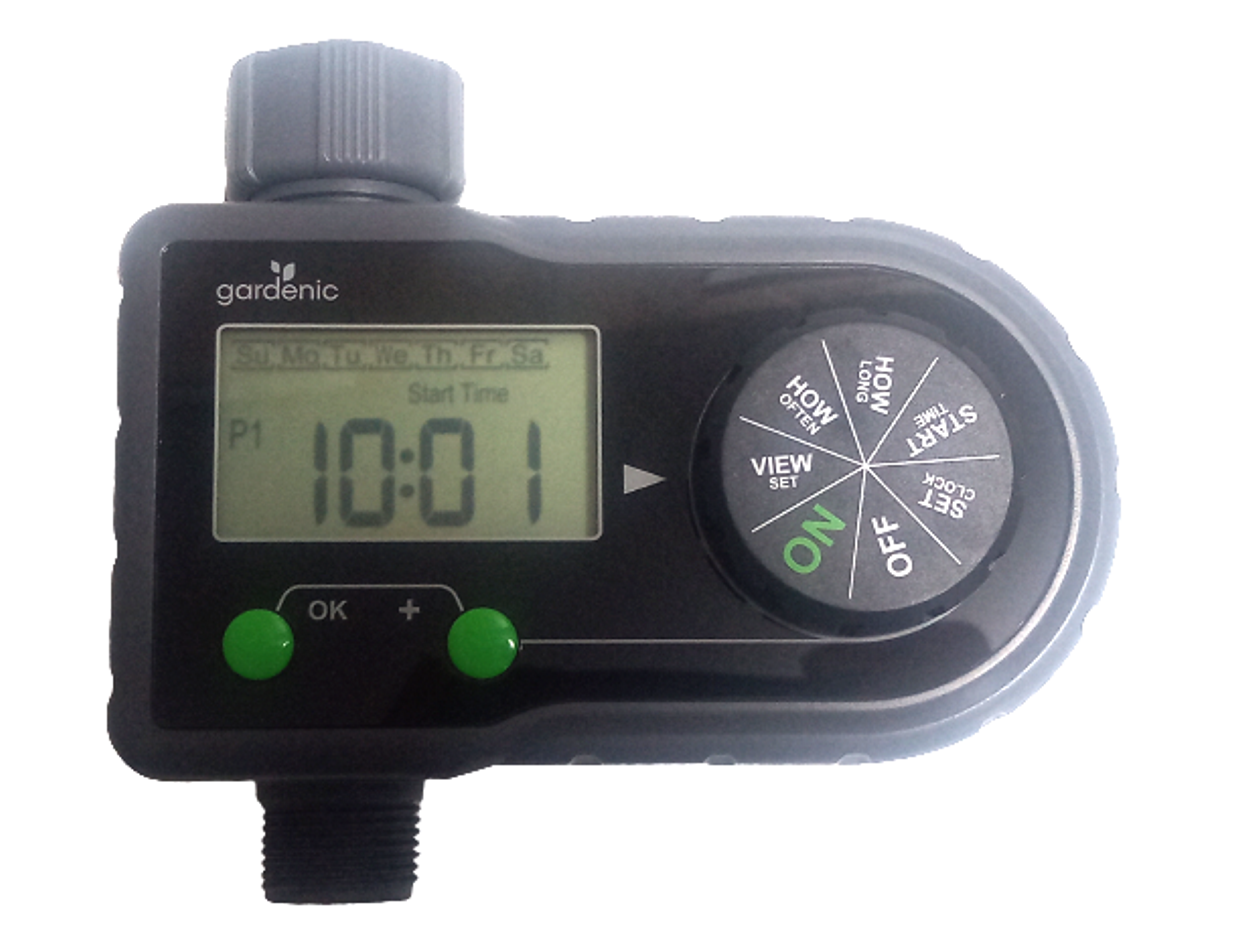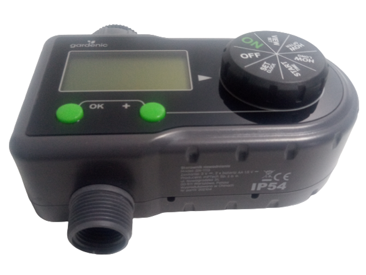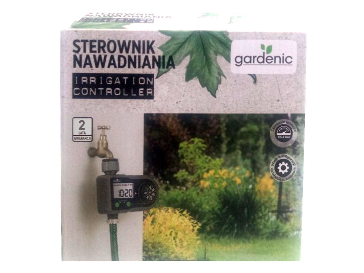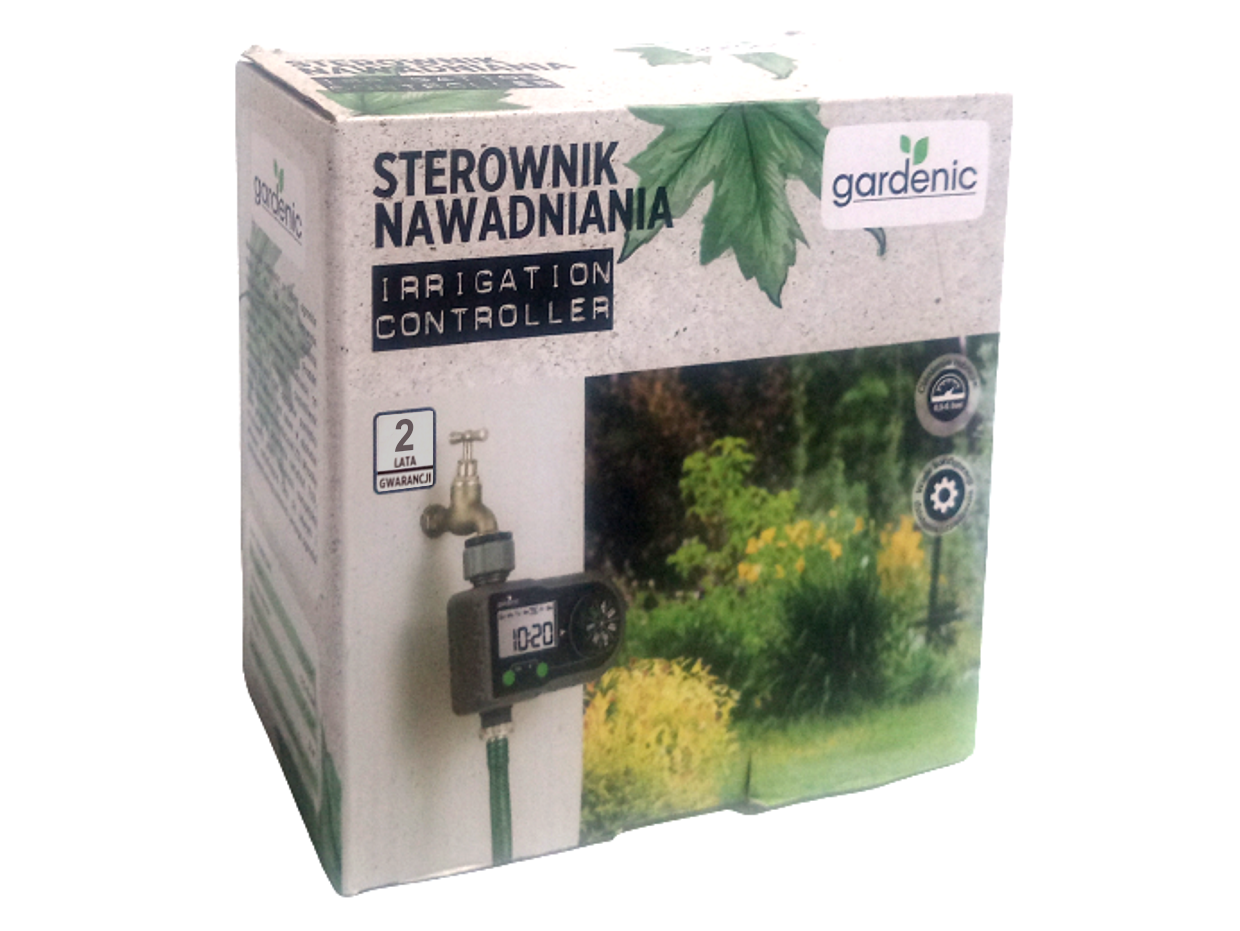 Sterownik nawadniania marki Gardenic to urządzenie, które umożliwia automatyczne nawadnianie ogrodu lub działki. Wyposażony w intuicyjny wyświetlacz LCD o rozmiarze 2,5" i duże pokrętło sterujące zapewnia łatwą i wygodną obsługę. Sterownik jest zasilany za pomocą 2 baterii AA, na których może pracować do roku czasu. Oferowany przez nas sterownik pozwala ustawić do 3 cykli nawadniania na dobę o długość nawadniania w zakresie 1-239min. Urządzenie posiada również możliwość planowania nawadniania w wybrane dni tygodnia lub też w trybie co 2-6 dni.