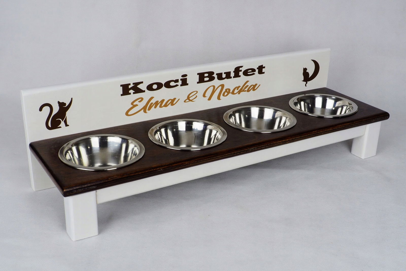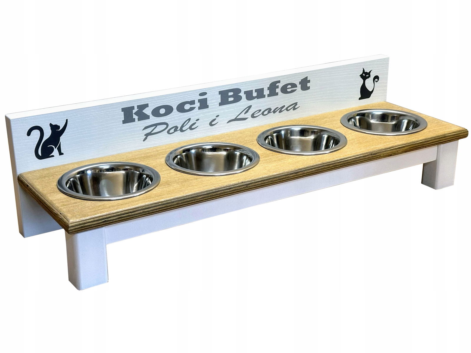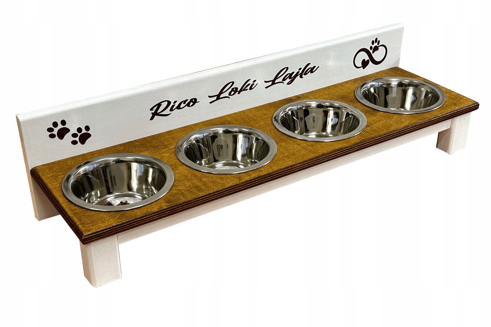Personalizowany stojak z trzema miskami dla małego psa lub dla dwóch piesków