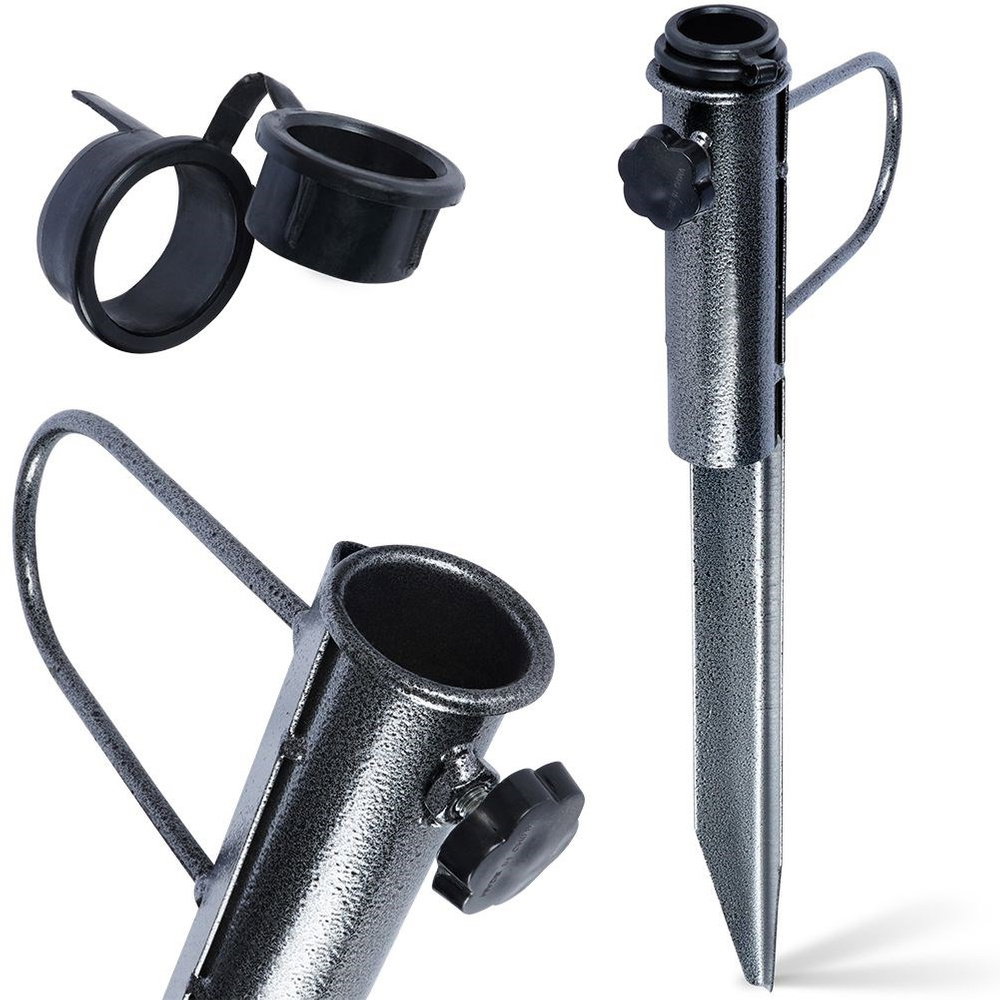 PRAKTYCZNY - Stojak do montażu parasola plażowego lub ogrodowego wraz z adapterem 25-35 mm. Możemy zamontować go za pomocą wbicia w podłoże. Wymiary stojaka wynoszą 42,5 x 18,5.