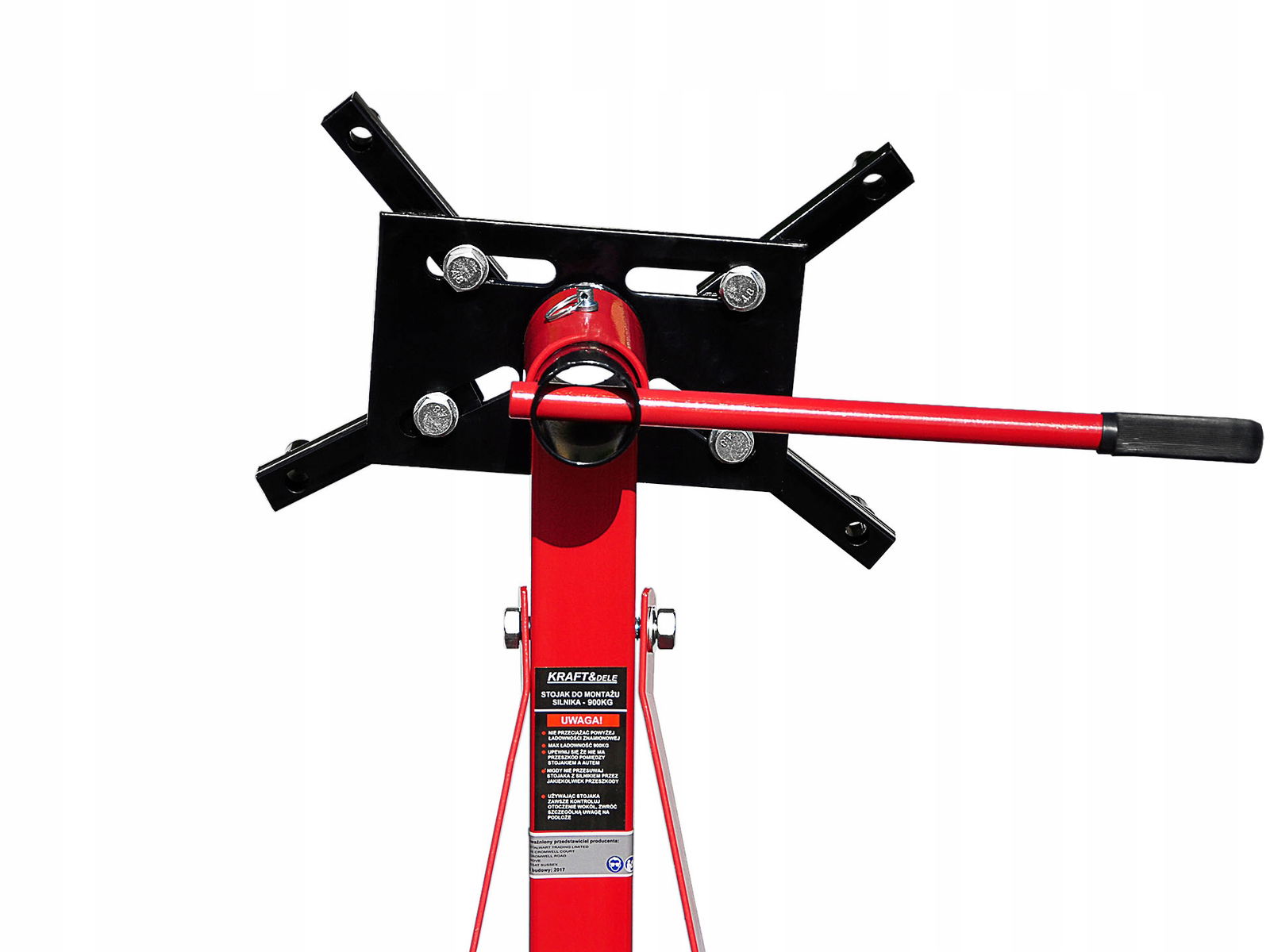 Podnośnik posiada mocną stalową konstrukcje, która bez problemu poradzi sobie z podwieszaniem silnika czy skrzyni biegów. Solidne spawy gwarantują wygodną i bezpieczną pracę.