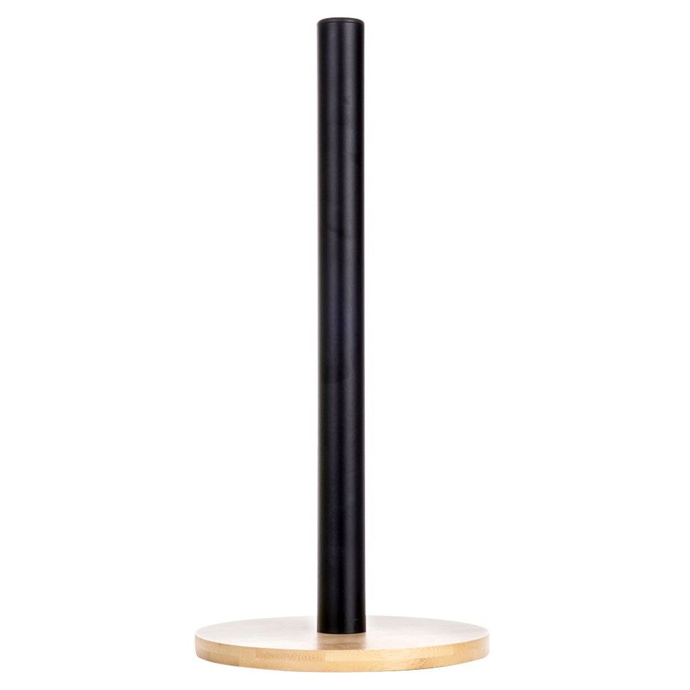 Stojak Kuchenny Czarny Metalowy Bambusowy na Ręcznik Papierowy Ręczniki