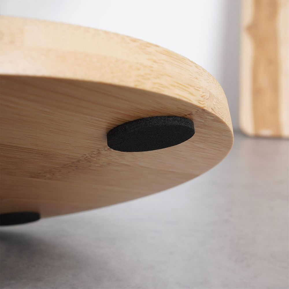 WYTRZYMAŁY - Wykonany z najwyższej jakości metalu w matowym, czarnym kolorze oraz drewna bambusowego. Stojak posiada okrągłą podstawę, która zapewnia stabilność. Odpowiednio użytkowany posłuży długie lata.