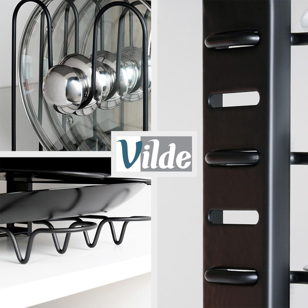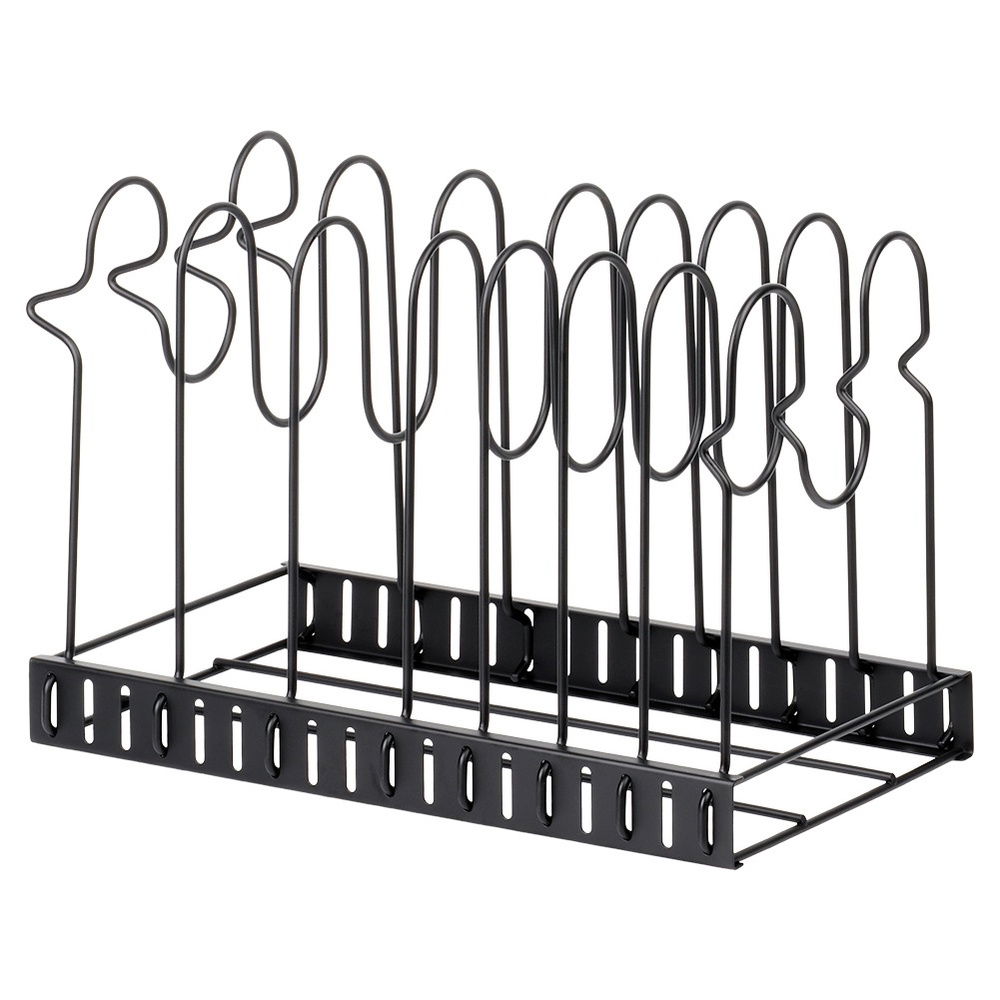 Dwie możliwości użytkowania – Stojak może być użytkowany w dwóch wersjach, jako samodzielny organizer na pokrywki, talerze i deski do krojenia lub jako stojak na garnki, patelnie i pokrywki. To rozwiązanie 2w1 pozwala dostosować układ przechowywania do własnych potrzeb i przestrzeni w kuchni.