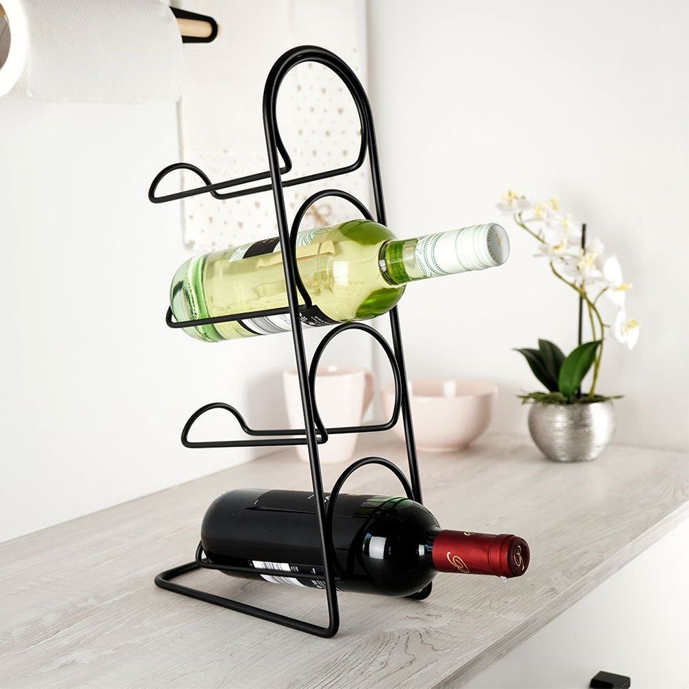 Stojak Metalowy Czarny Wino Alkohol Regał Szafka Półka na Wina 4 Butelki