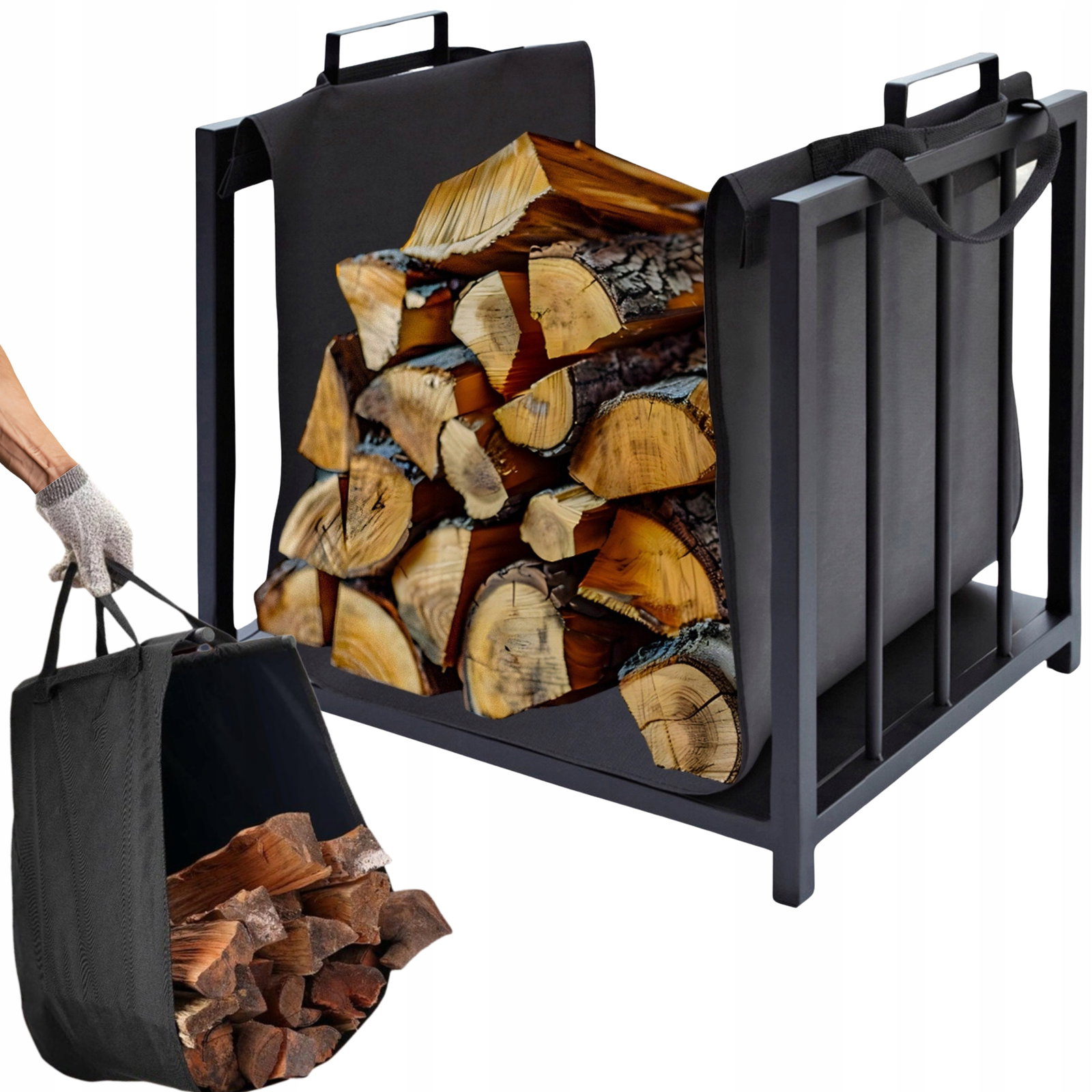 Stojak Na Drewno Kominkowe Opałowe Czarny Metalowy Kosz Loft + Duża Torba