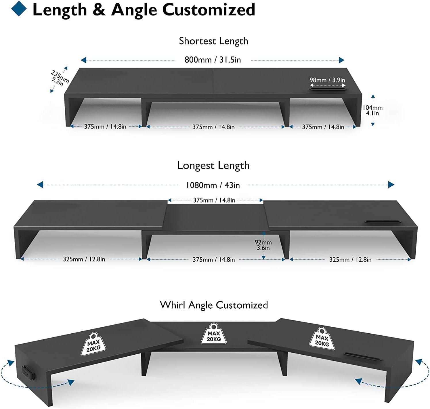 - Regulowana długość i kąt: Możesz swobodnie ustawić szerokość podstawy oraz kąt nachylenia bocznych części, aby uzyskać idealny widok panoramiczny.