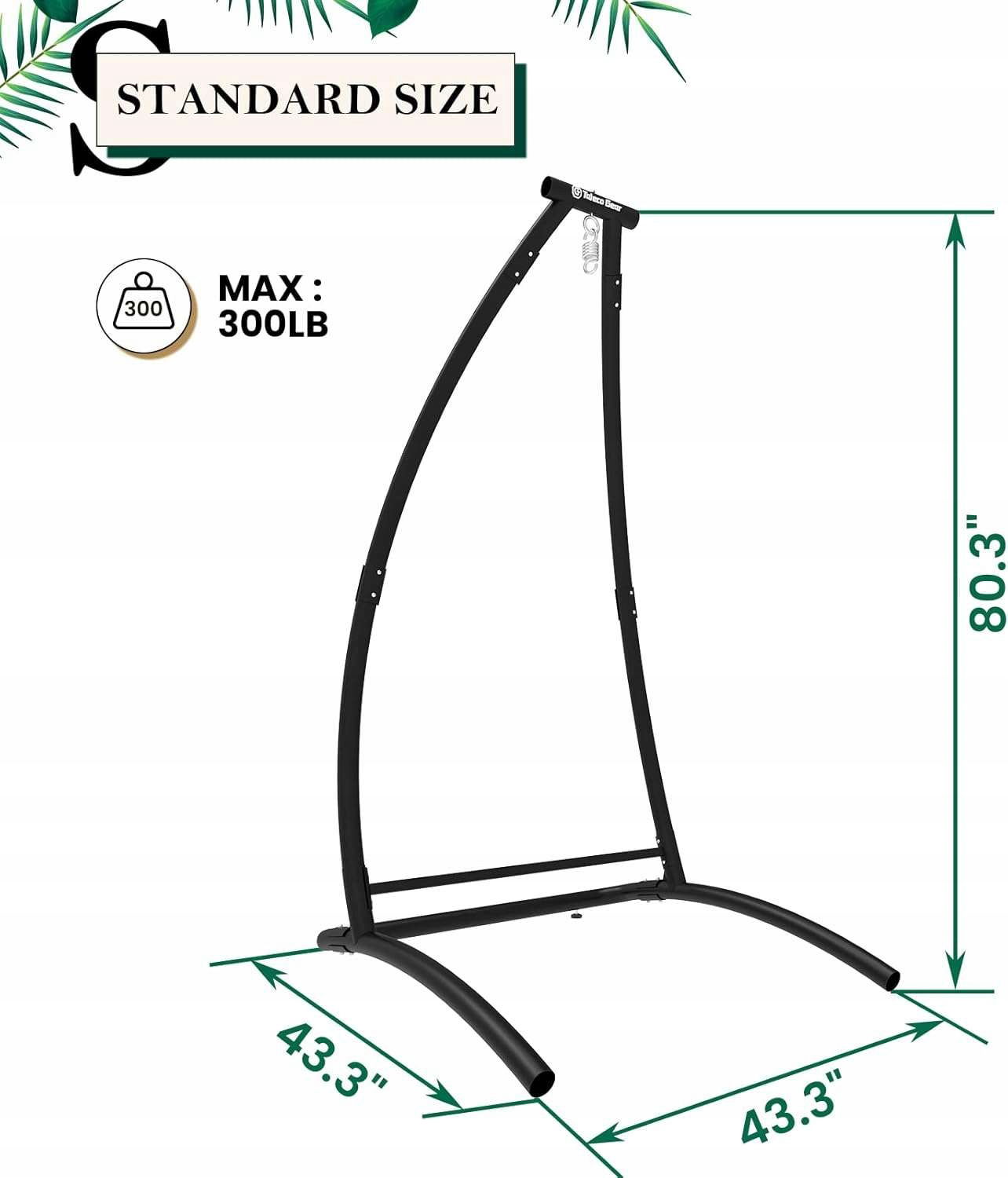 Nowoczesny stojak typu C na hamak łączy w sobie piękno kształtu z doskonałą stabilnością. Dzięki podwójnej strukturze tuby, wytrzymuje większe obciążenia, zapewniając równowagę i stabilność.