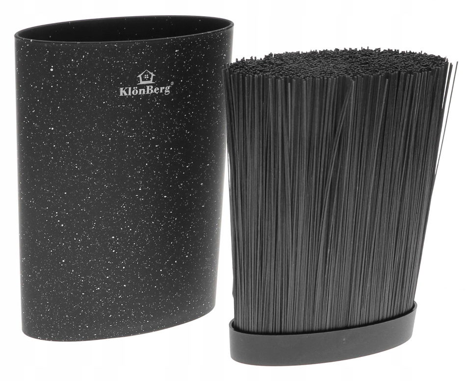 • Wypełniony pręcikami z tworzywa, dzięki czemu można w nim przetrzymywać noże o różnych rozmiarach i grubości