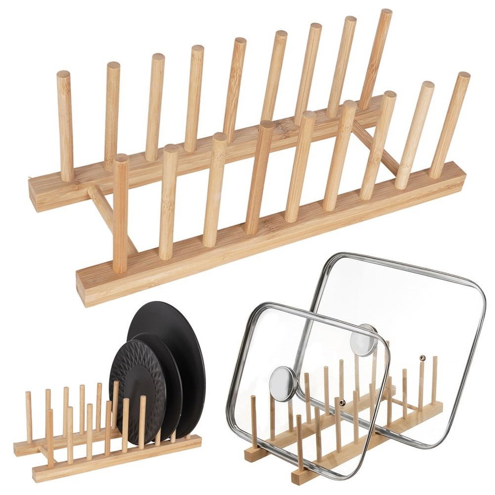 STOJAK NA POKRYWKI TALERZE KUCHENNY PODSTAWKA ORGANIZER DREWNIANY BAMBUSOWY