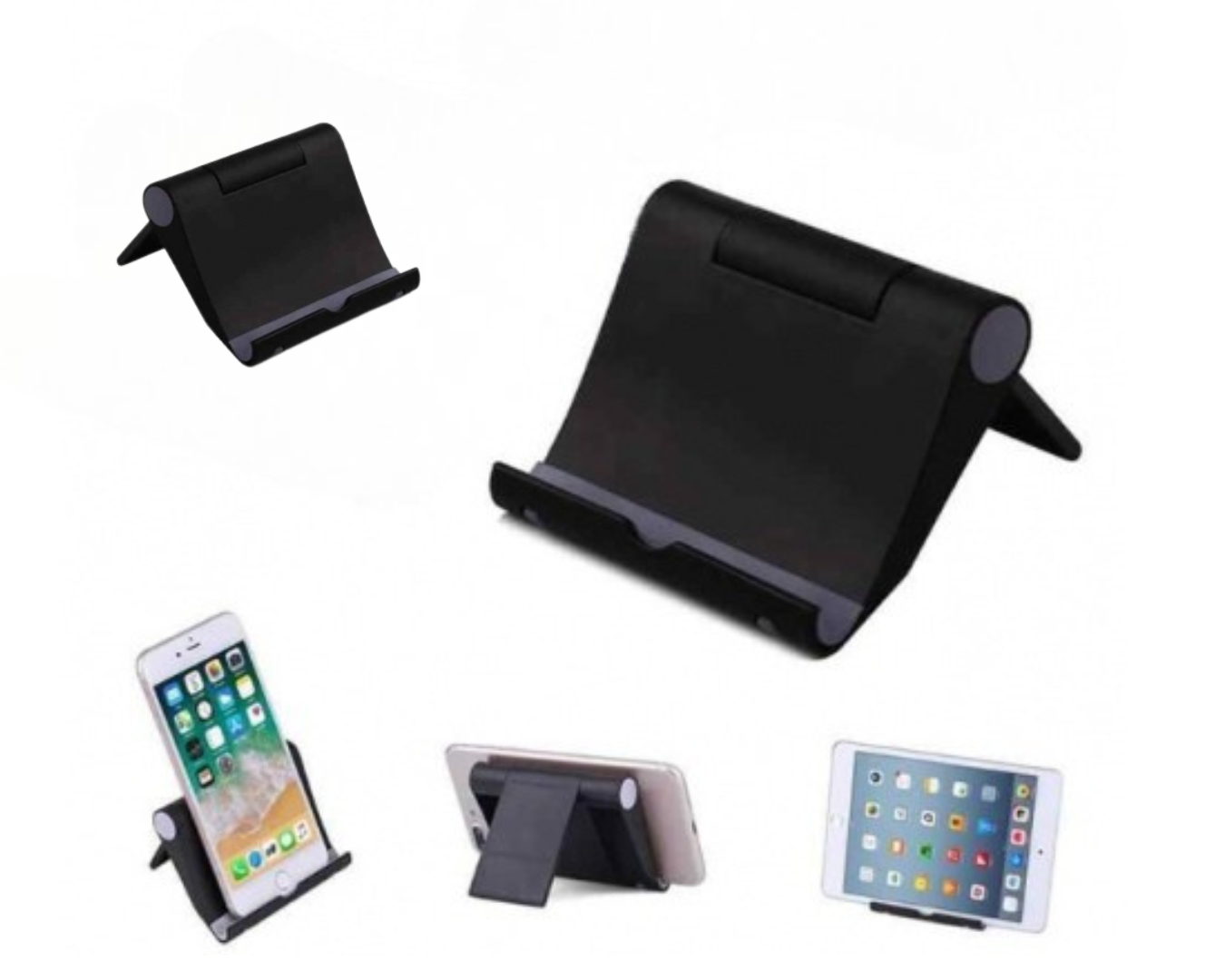 Uniwersalny statyw na telefon i tablet z możliwością regulacji nachylenia. Uchwyt posiada specjalne łapki, dzięki czemu urządzenie nie ulegnie przesunięciu i nie wypadnie, a możliwość złożenia.Przemyślana konstrukcja statywu umożliwia umieszczenie w nim w zasadzie dowolnego urządzenia elektronicznego o grubości do 14 mm.Szeroka regulacja nachylenia w zakresie od 0 do 100 stopni.Podstawka posiada specjalną antypoślizgową gumkę, która uniemożliwia przypadkowe wywrócenie urządzenia.Wymiary:9,8 x 7,8 x 7,5 cmkolor: czarny