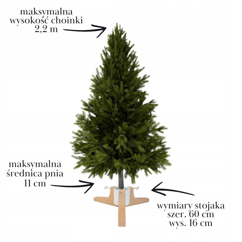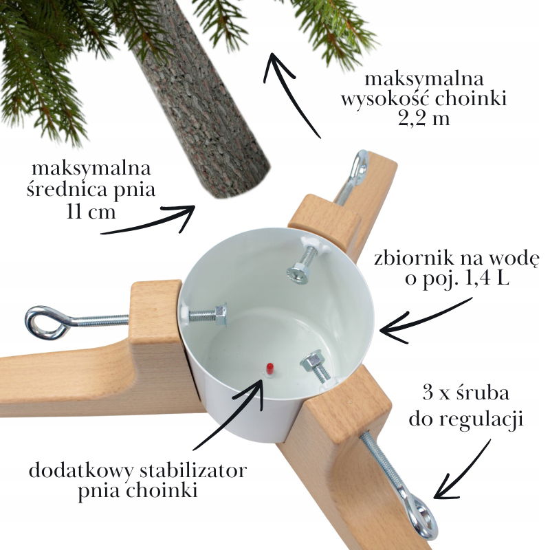 - Mocowanie choinki: 3 regulowane śruby