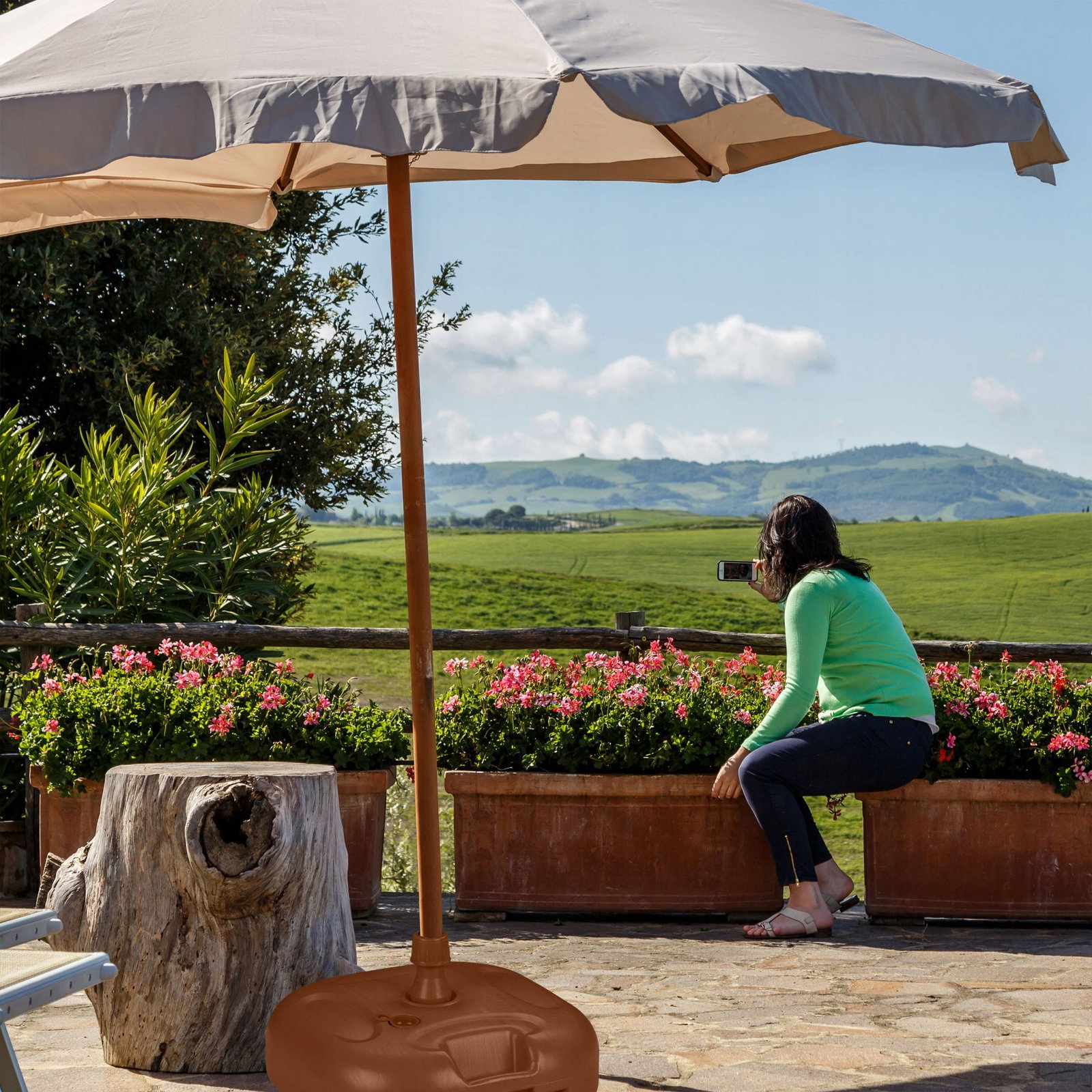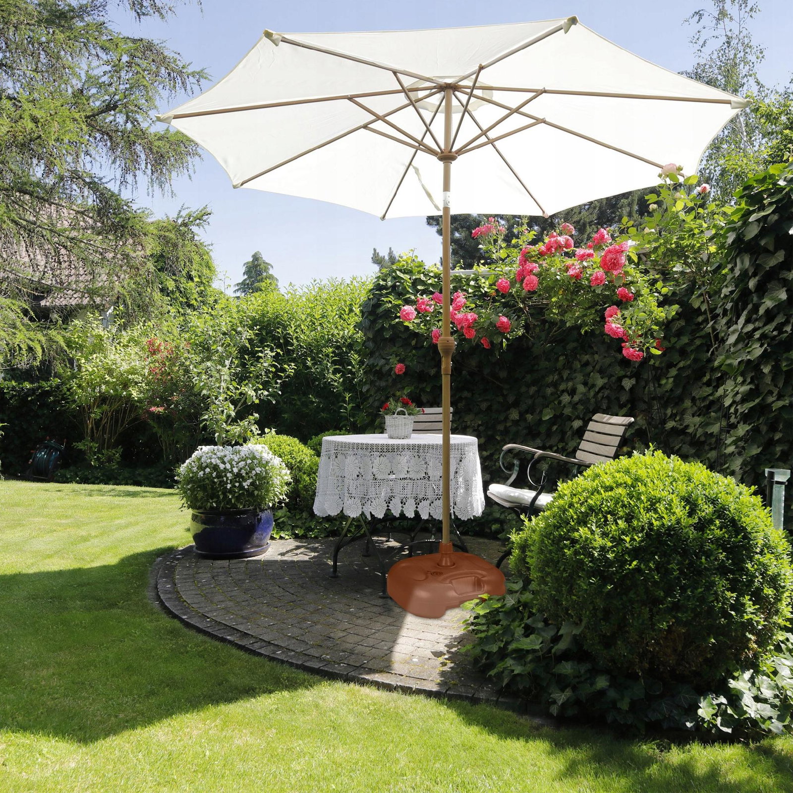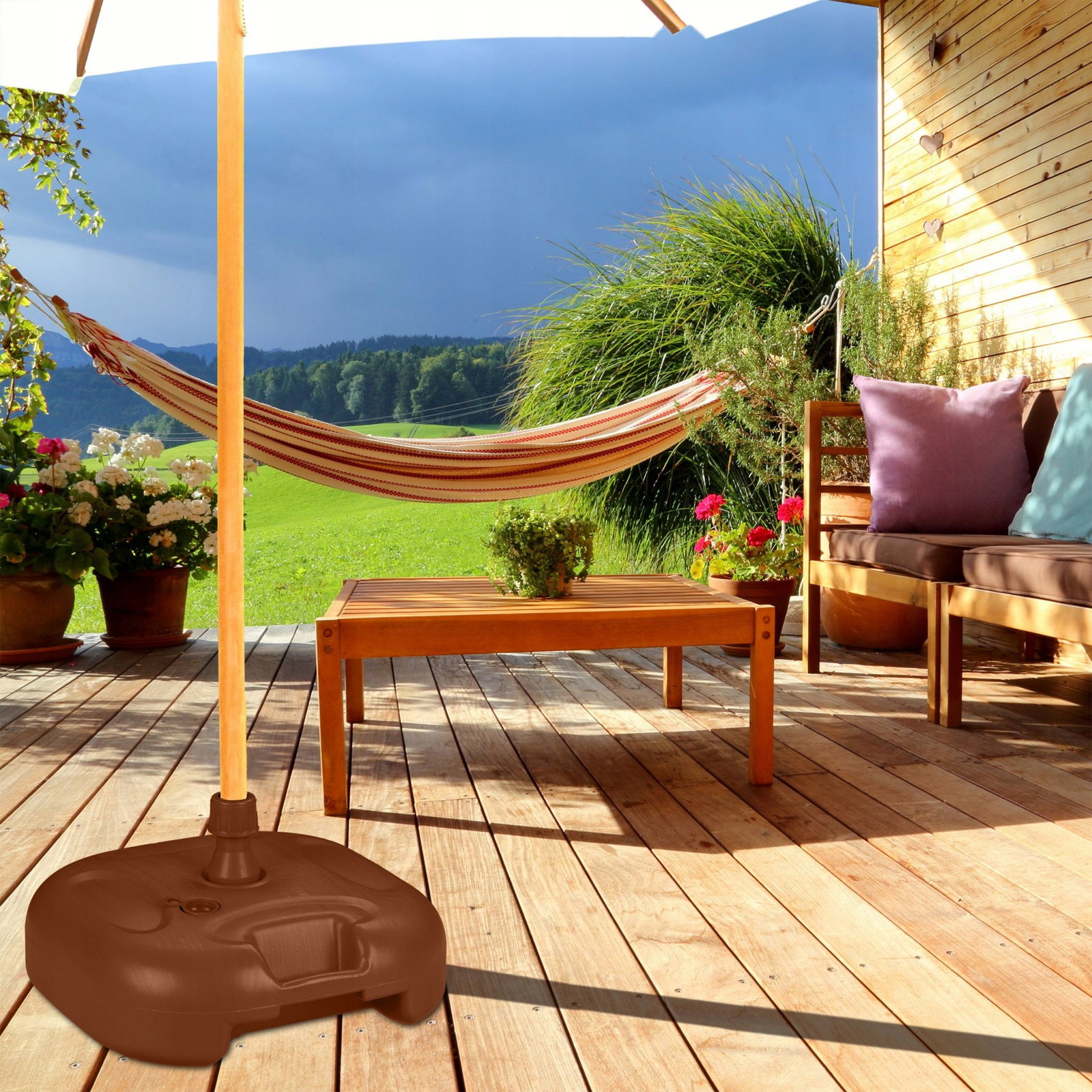 Dzięki podstawie parasola Twój parasol pozostaje stabilny, a Ty możesz odpocząć i cieszyć się gorącymi letnimi dniami w cieniu. Wystarczy napełnić uchwyt na parasol wodą lub piaskiem i jest on dociążony, aby niezawodnie zatrzymał się nawet przy niewielkich podmuchach wiatru. Niewypełniony stojak balkonowy można łatwo przenieść za uchwyt w wybrane miejsce w ogrodzie lub na balkonie.
