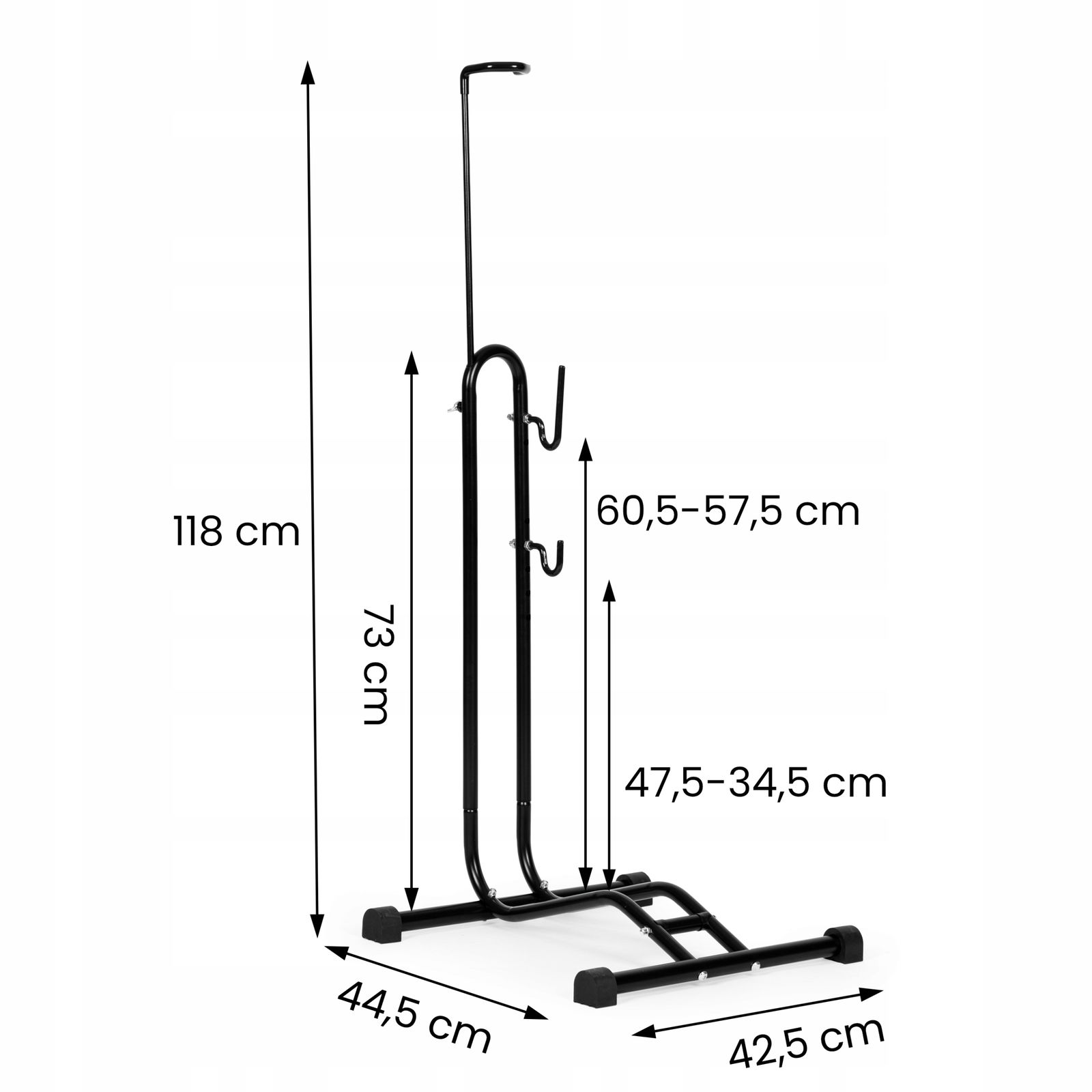 - Antypoślizgowe Nóżki: dzięki antypoślizgowym nóżkom, stojak nie przesuwa się ani nie ślizga po podłożu, nawet na gładkich powierzchniach. Zapewniają one dodatkową stabilność i bezpieczeństwo podczas przechowywania roweru oraz zabezpieczają podłogę przed zarysowaniem.