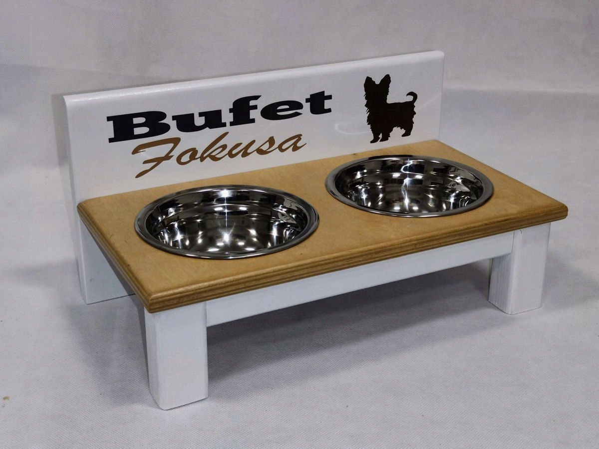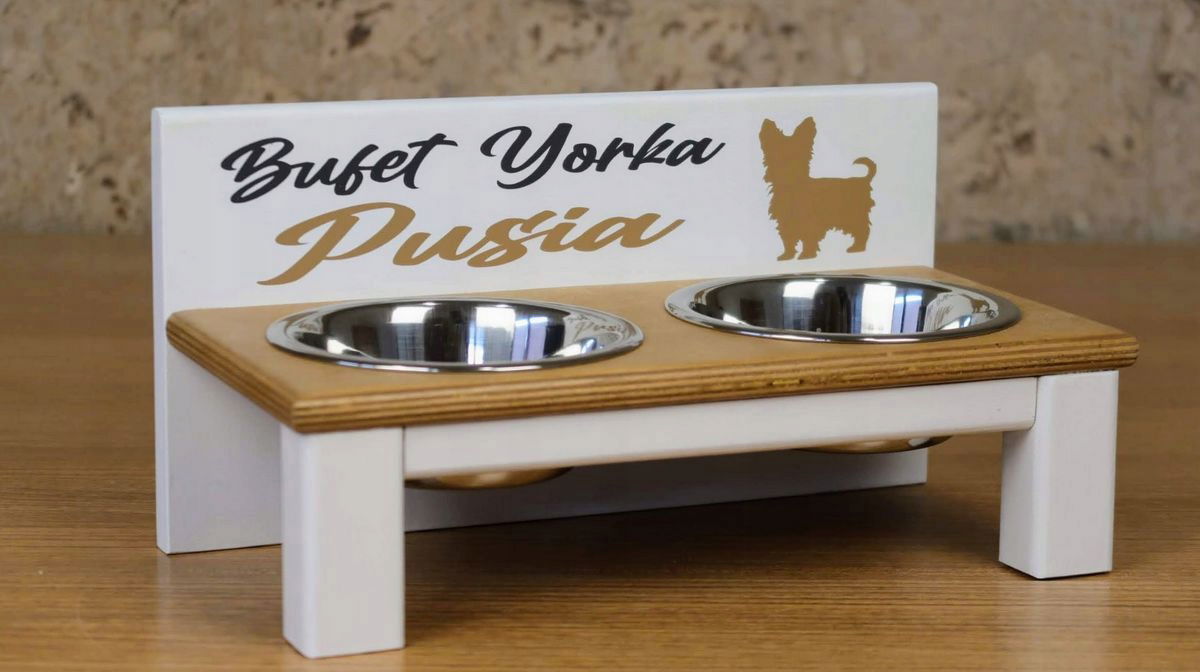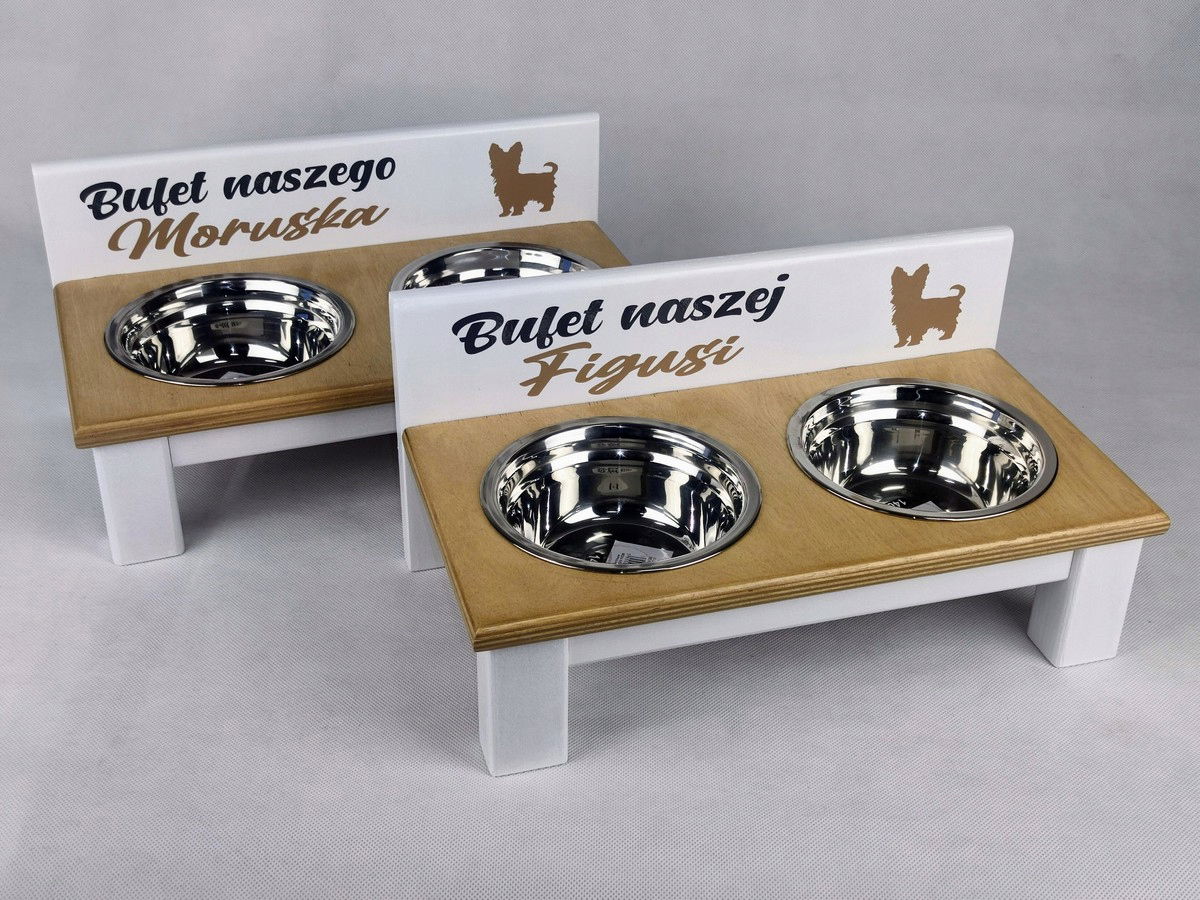 Stojak z dwiema miskami dla małego pieska - 2 x 220 ml + Nadruk z imieniem