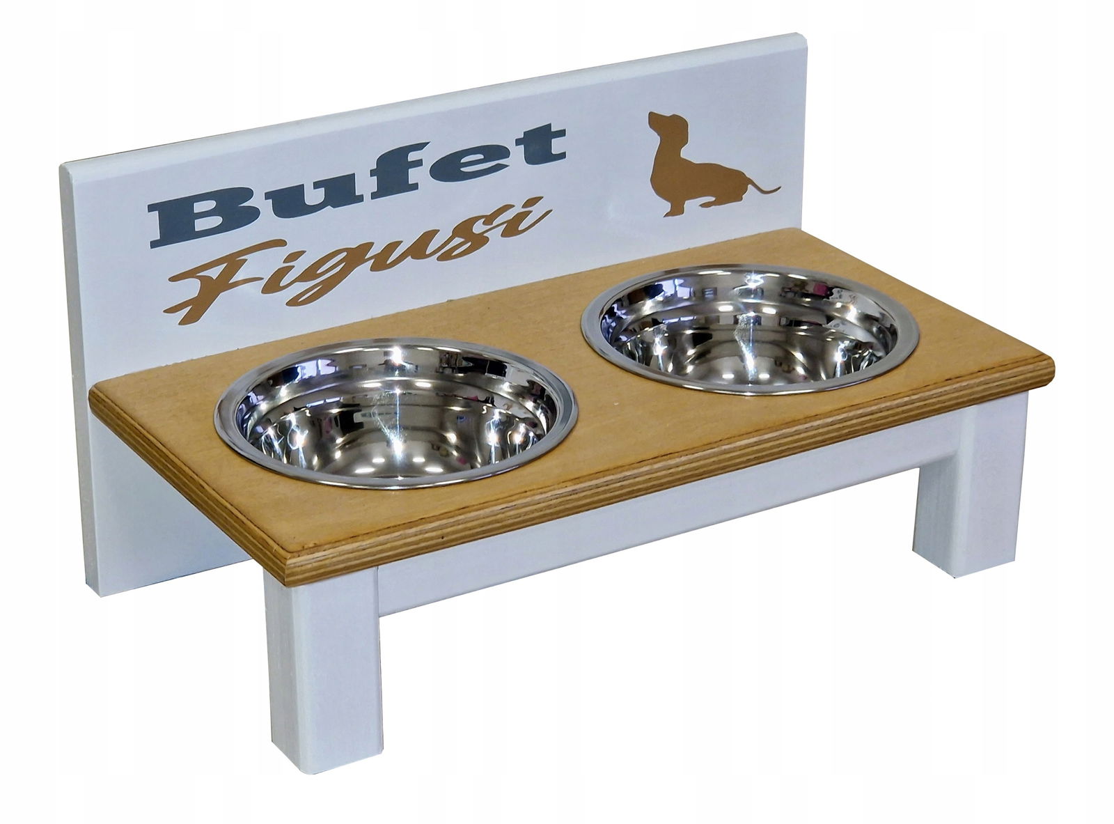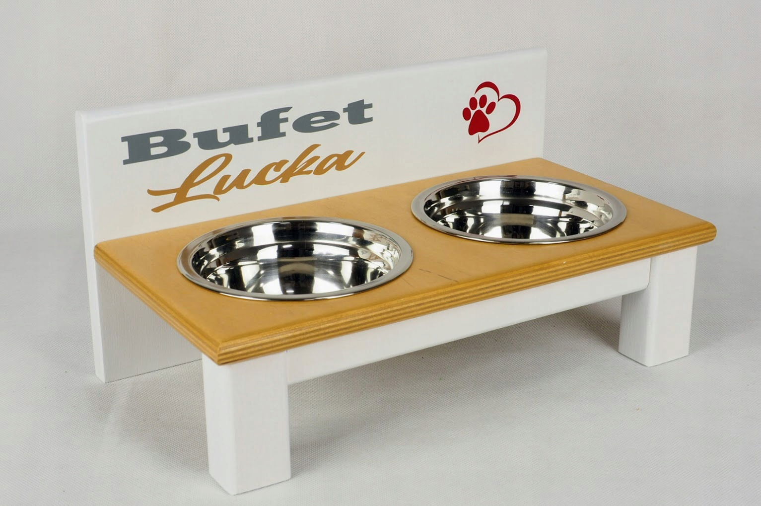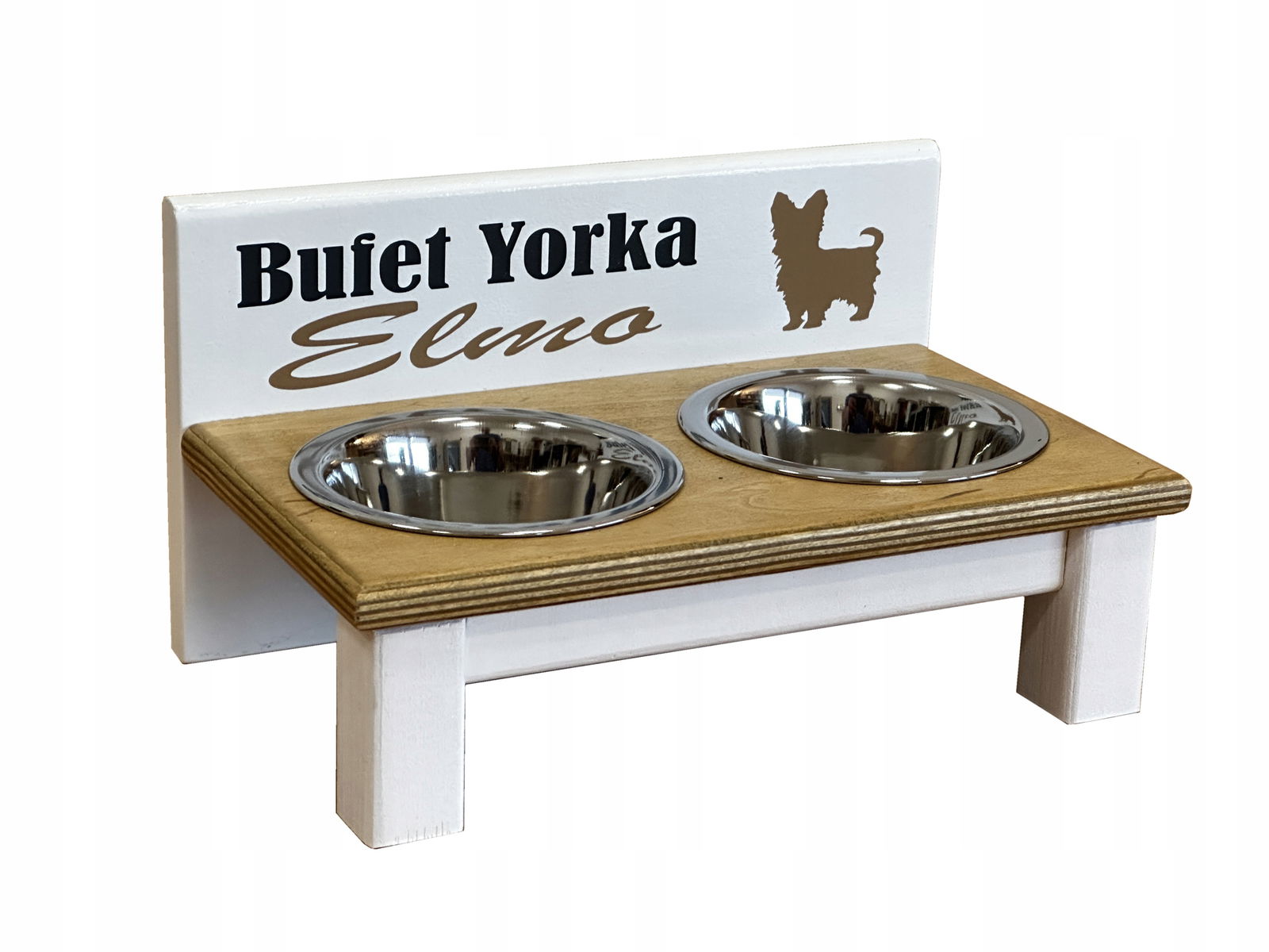 Stojak z dwiema miskami dla małego pieska - 2 x 220 ml + Nadruk z imieniem