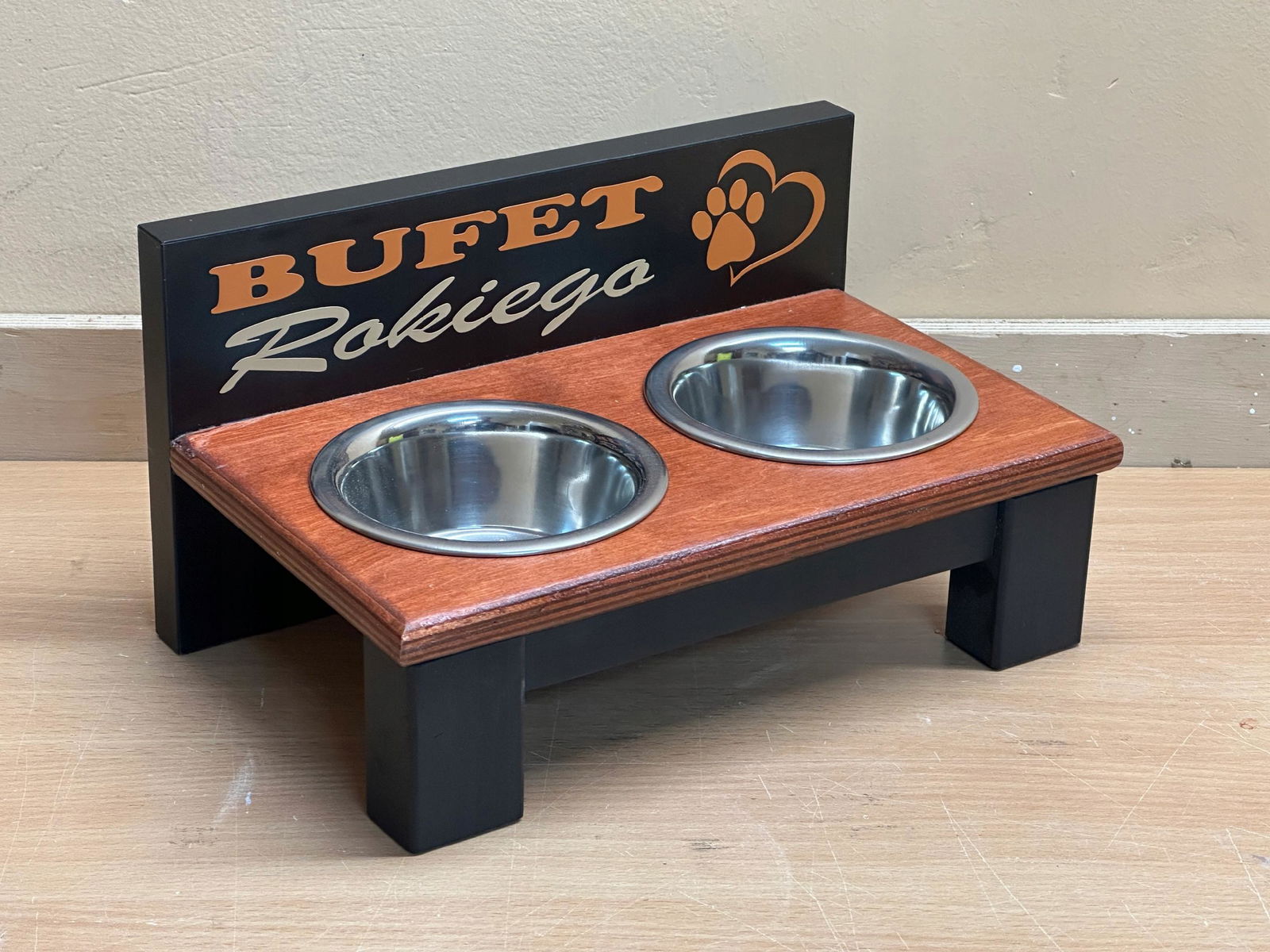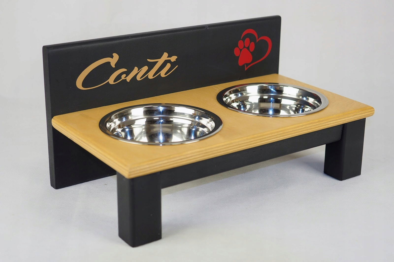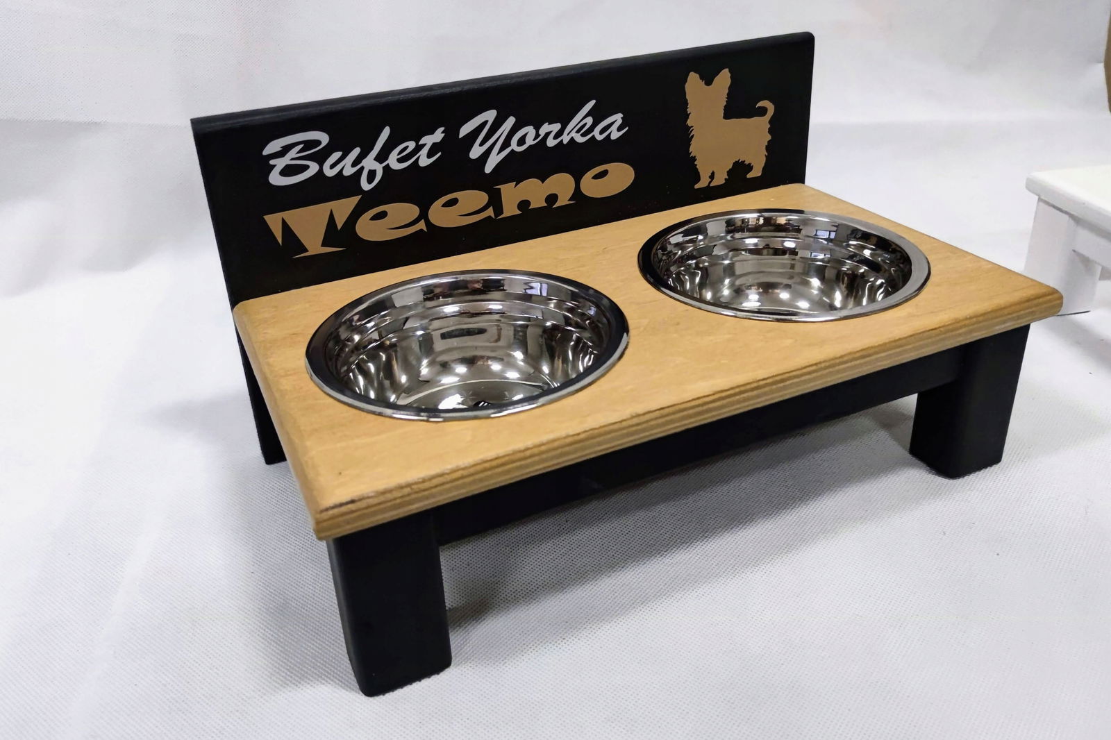 Stojak z dwiema miskami dla małych ras - 2 x 370 ml. Nadruk z imieniem