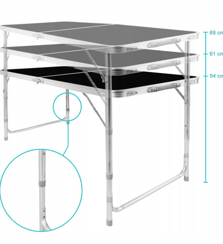 - ✔ Składany stół jest stabilny z aluminiowymi krawędziami, lekki i 3-stopniowa regulacja wysokości (wysokość: 55 / 62 / 69 cm). Duża powierzchnia robocza o wymiarach 120 x 58 cm nadaje się do wszystkich zastosowań, jak również na pchły targ.