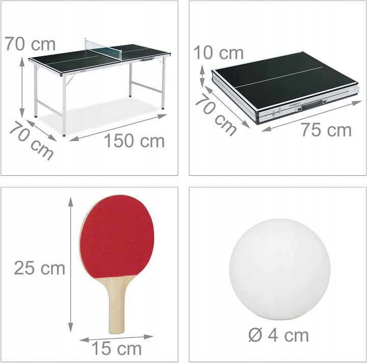 Stół do tenisa stołowego midi wraz z siatką, 2 rakietami i 3 piłkami doskonale nadaje się do ekscytujących meczów w domu. Blat jest mniejszy niż tradycyjne stoły do tenisa stołowego, dzięki czemu w środku masz wystarczająco dużo miejsca na huśtanie rakietą. Dzięki 4 nóżkom z regulacją wysokości ten mini stół do tenisa stołowego stoi stabilnie również na nierównych podłożach. Przy pięknej pogodzie mecze można również zabrać na zewnątrz. W tym celu stół do ping ponga jest składany i transportowany za uchwyt.