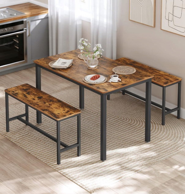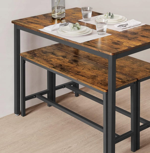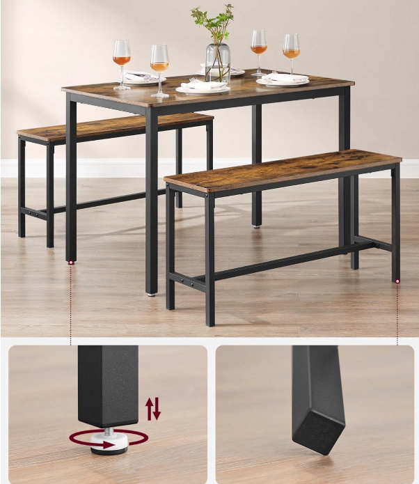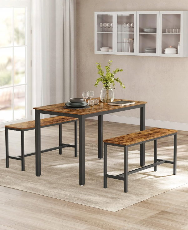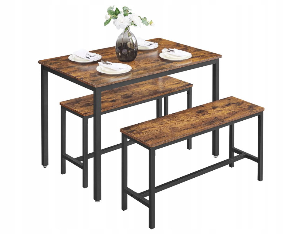 Stół jadalny z 2 ławkami, zestaw 3-częściowy, stół VASAGLE KDT070B01V1