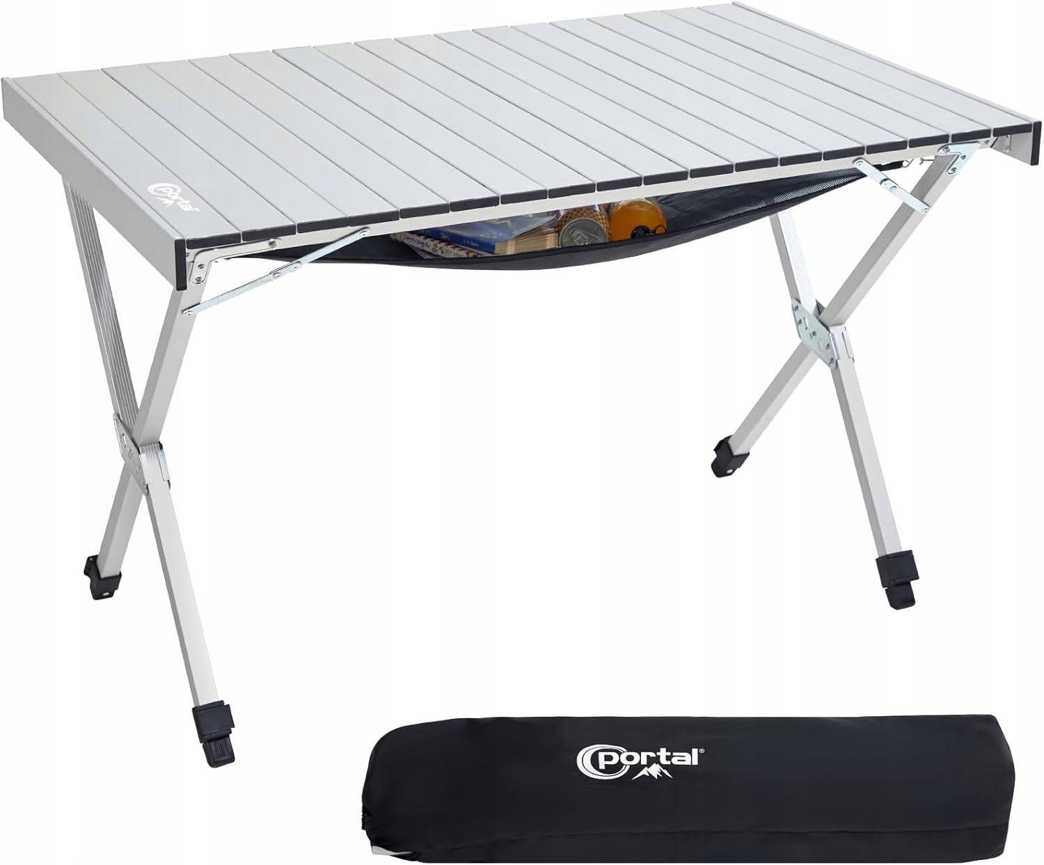 Stół kempingowy PORTAL składany srebrny 108x71 cm regulacja wysokości