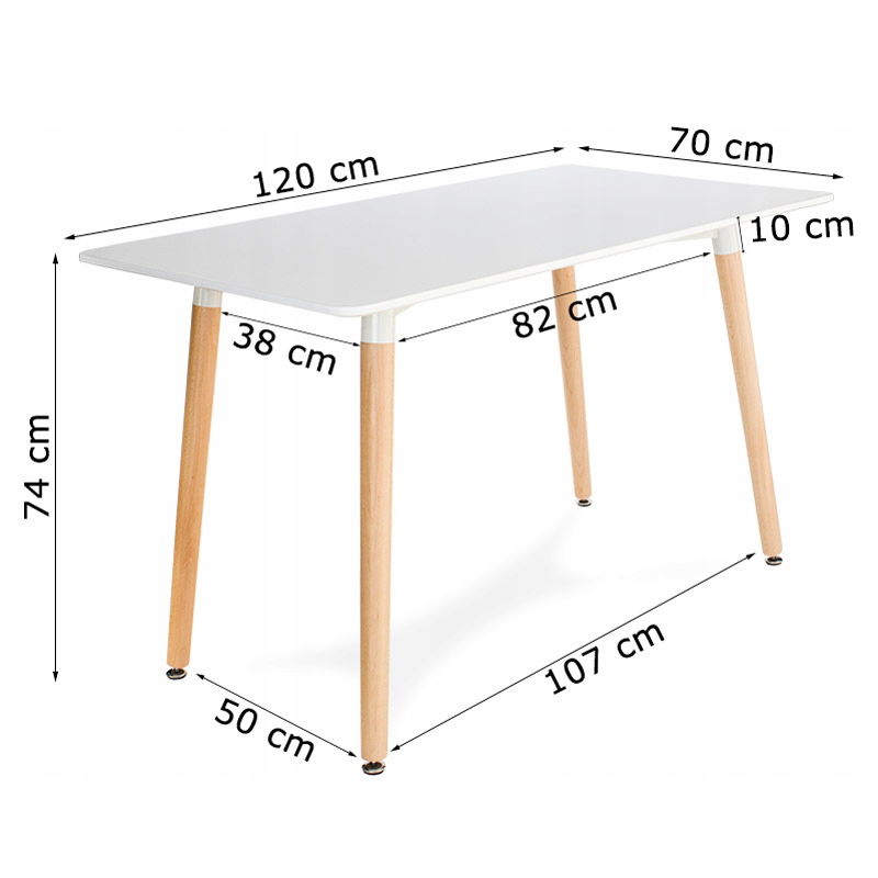 Stół składa się z dwóch elementów; z solidnej drewnianej podstawy oraz z blatu, wykonanego z płyty wiórowej, polakierowanej. Dolna konstrukcja produktu sprawia, że stół stoi stabilnie, nie przechyla się, a otwory montażowe na śruby przytwierdzające blat gwarantują spójność. Kolory mogą nieco różnić się od rzeczywistych w zależności od indywidualnych ustawień monitora.
