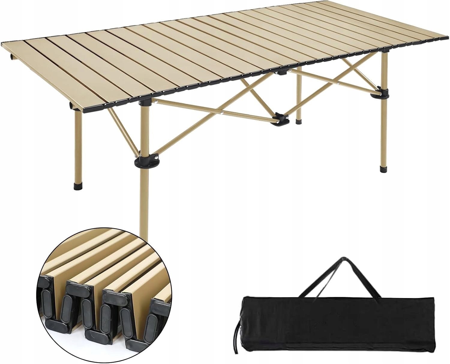 - Lekki, składany stół kempingowy 120 cm ze zwijanym blatem do użytku w pomieszczeniach i na zewnątrz
