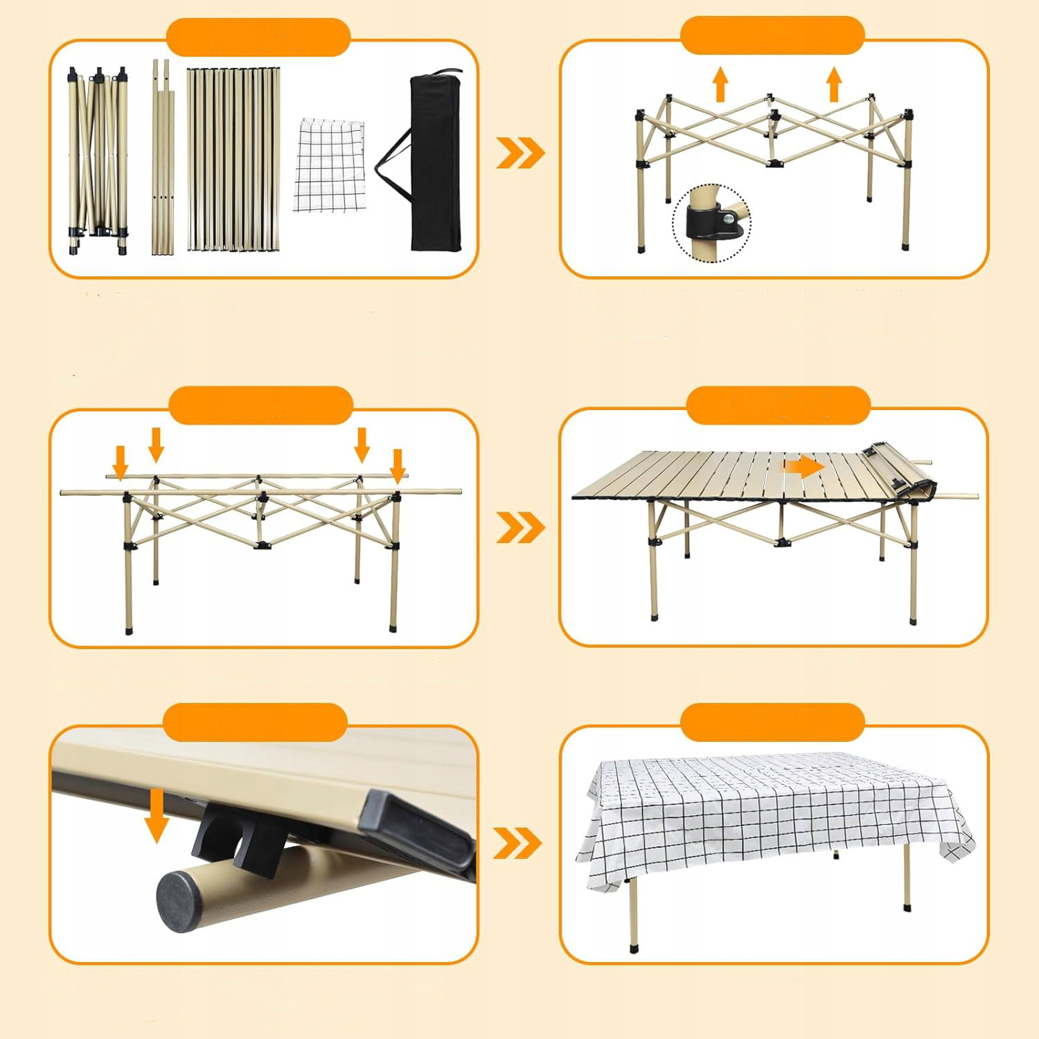 - Nasz rozkładany stół kempingowy jest wszechstronny i praktyczny, pasuje do wielu aktywności wewnątrz i na zewnątrz, takich jak piknik, kemping, turystyka piesza.